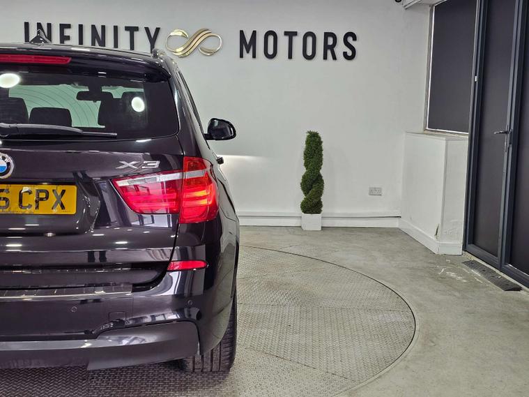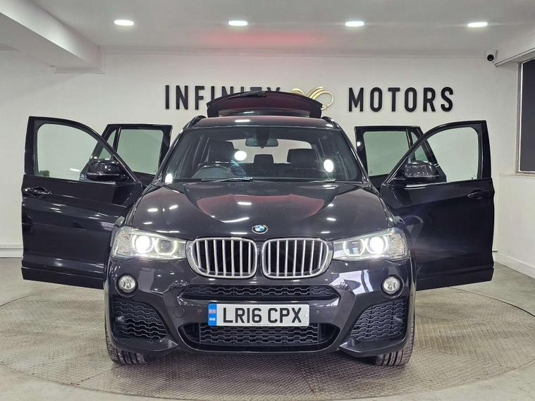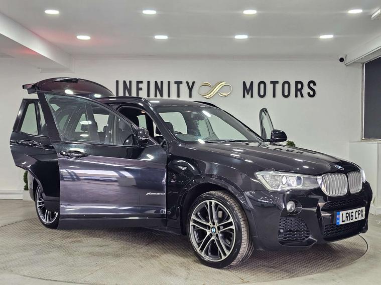 Infinity Motors presents the stunning BMW X3 in sleek Black Sapphire finish. This top-of-the-line model comes fully loaded with extras including 20-inch Alloy Wheels, Enhanced Bluetooth Telephone Preparation, Harman Kardon Speaker System, and Xenon Headlights for a truly luxurious driving experience.