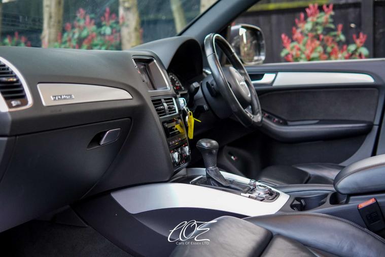 Superb example of the Audi Q5 S line Plus, finished in stunning Daytona Pearl with Black Nappa leather interior trim. This well-presented vehicle boasts an impressive specification and comes complete with documented service history. A rare petrol model with an excellent level of equipment, offering both performance and luxury in one exceptional package.