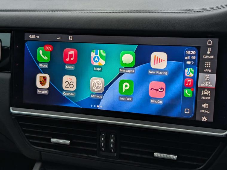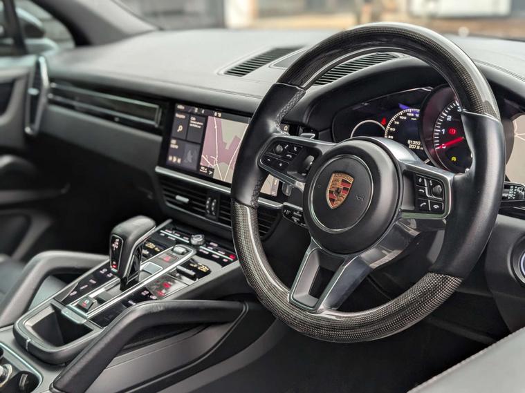 Step inside the Porsche Cayenne and you'll find a wealth of premium features, including an Interior Package in Carbon, Porsche Crest Embossed on the Front Seat Headrests, and Jet Black Smooth Finish Leather upholstery. The Compass Display on the Dashboard adds a touch of sophistication to the cabin, making every journey a truly luxurious experience.