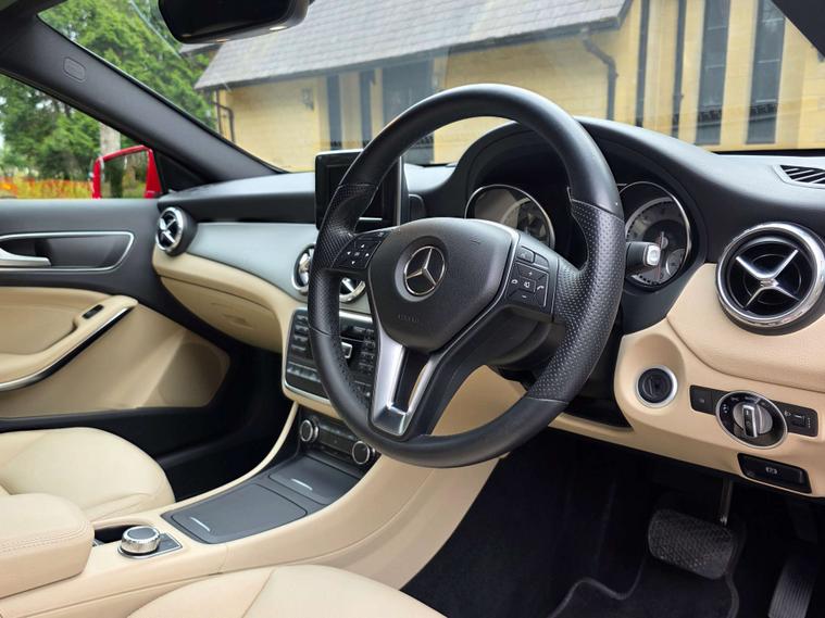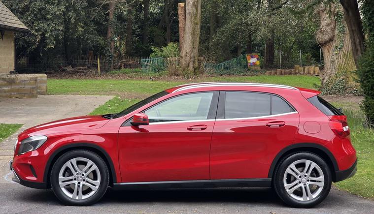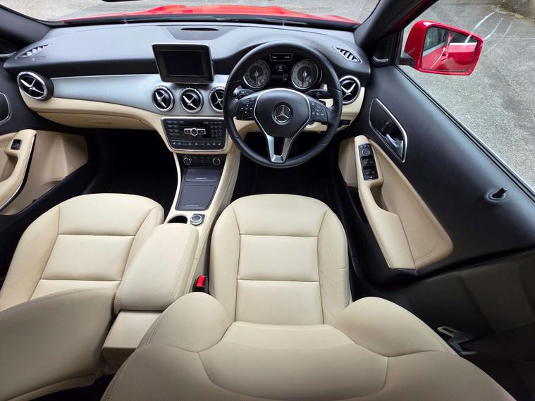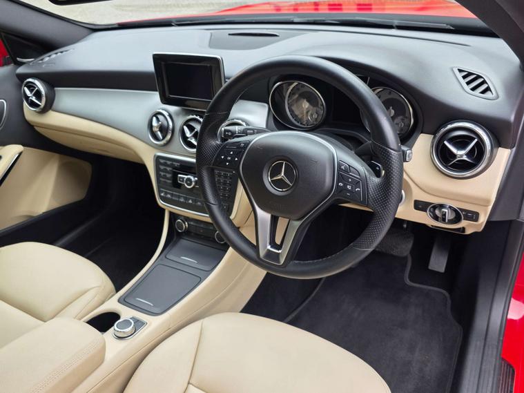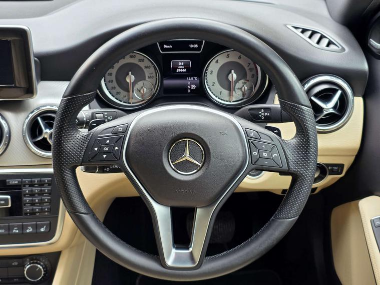 This 2014 Mercedes Benz GLA250 SE is a rare find, having had only two owners from new and boasting a clear vehicle history check. This four wheel drive model features a responsive 2.0 litre petrol engine, meeting Euro 6 emissions standards. The SE trim level includes practical features such as Headlight Assist for automatic headlight activation, a reversing camera to aid parking, and air conditioning for a comfortable cabin environment. Connectivity is also well catered for with Bluetooth functionality.