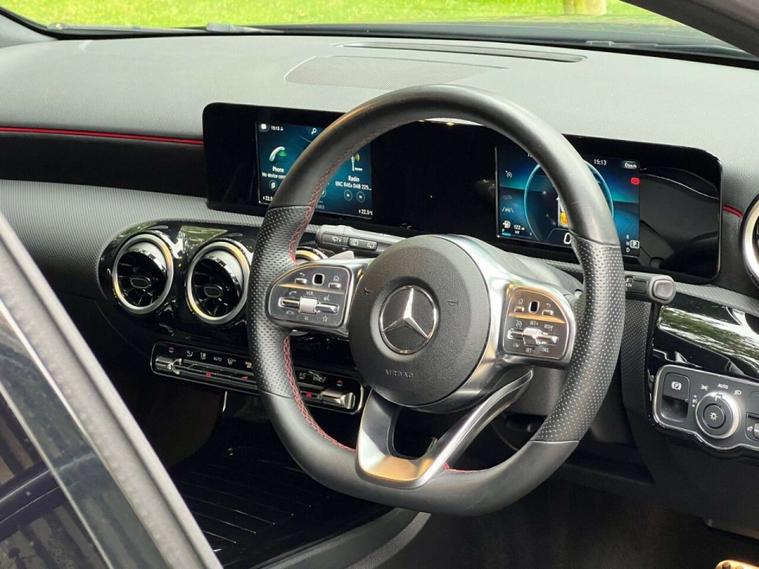 AA INSPECTED - HOME DELIVERY - FINANCE AVAILABLE. Stunning example of the Mercedes-Benz A-CLASS AMG LINE, finished in Metallic Cosmos Black, Black Leather/Suede Seats and 18-inch Diamond Cut Alloys. FULL SERVICE HISTORY. GREAT SPECIFICATION with features including: REVERSE CAMERA & SENSORS + DUAL CLIMATE CONTROL + STOP/START + APPLE CARPLAY/ANDROID AUTO + NAV + CRUISE CONTROL ETC.. This car is comfortable, economical (72MPG), very luxurious and practical. ULEZ compliant! Great to drive with dynamic driving modes and paddle shift gearbox.