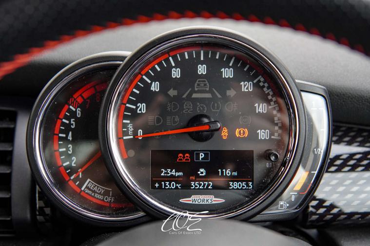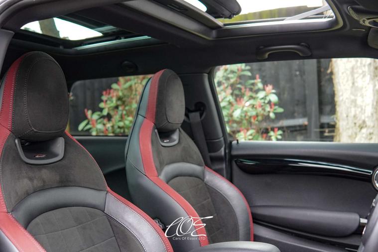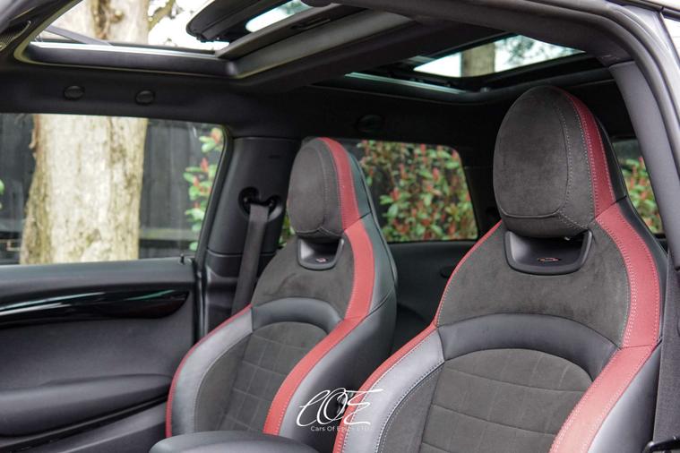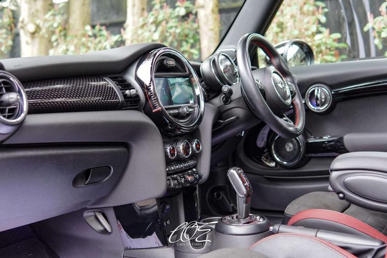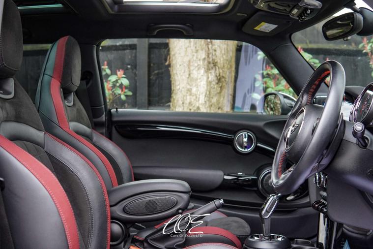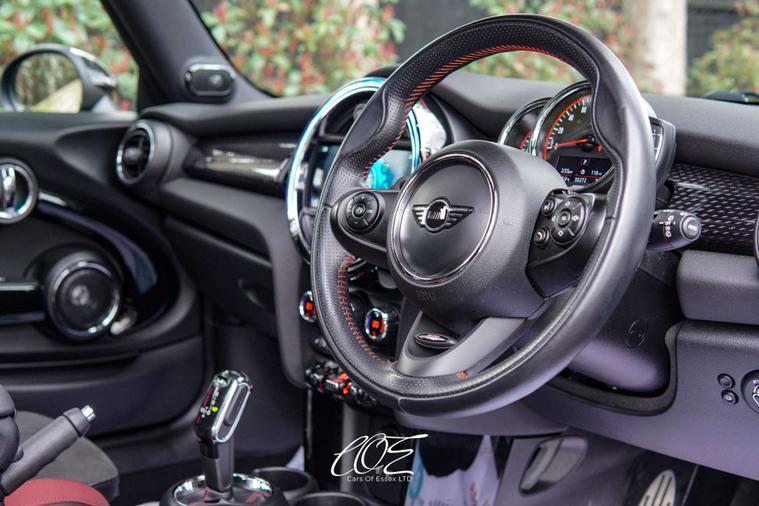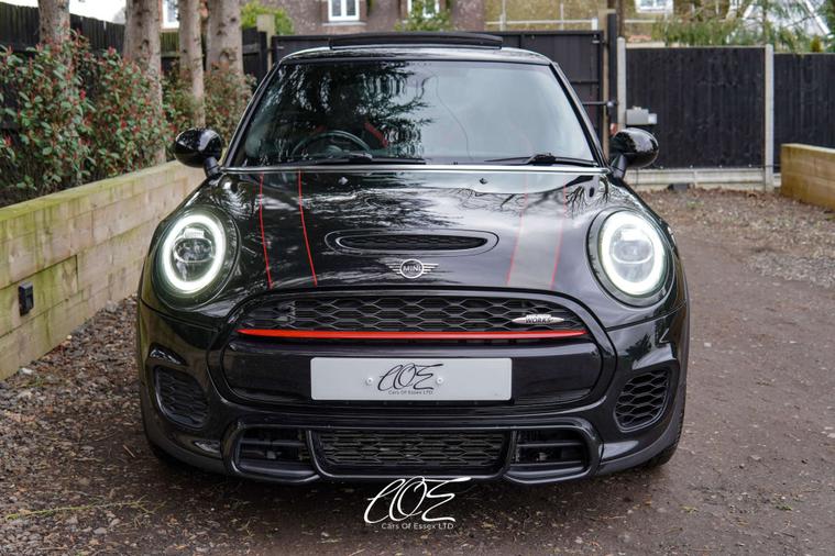 SPECIFICATION HIGHLIGHTS - Panoramic Electric Glass Sunroof / Harman Kardon Sound System / CHILI Pack / Navigation Plus Pack / Rear View Camera / Heated Seats / 18in Alloy Wheels - John Cooper Works Cup Spoke in Two-Tone with Run-Flat Tyres / Air Conditioning - Automatic Dual Zone / Bluetooth with Wireless Charging / Chrome Line Interior / Comfort Access System / Darkened Rear Glass / Dinamica-Leather - Carbon Black / Electrically Folding Exterior Mirrors / Front Centre Armrest / Heated Front Windscreen / Interior Light Pack / John Cooper Works Bonnet Stripes / MINI Excitement Pack / Midnight Black / Navigation / PDC - Park Distance Control - Rear / Piano Black Exterior Trim / Rain Sensor and Automatic Headlight Activation / Plus Much More