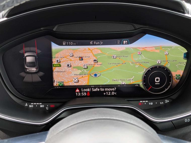 But that's not all - this Audi Tt also boasts Headlights with High-Beam Assist, Fine Nappa Leather Super Sport Seats in Rotor Grey, and Electrically Adjustable Door Mirrors that are heated and auto-dimming for added safety.