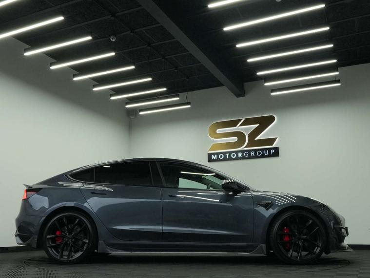 SZ MotorGroup Nottingham are pleased to offer this stunning Tesla Model 3 Dual Motor Long Range Auto AWD, REGISTRATION BT71 KZE. Presented in excellent condition throughout, this example benefits from a full carbon bodykit, 20” black alloy wheels, and a full black exterior pack, giving the vehicle a sharp, modern, and highly desirable road presence.