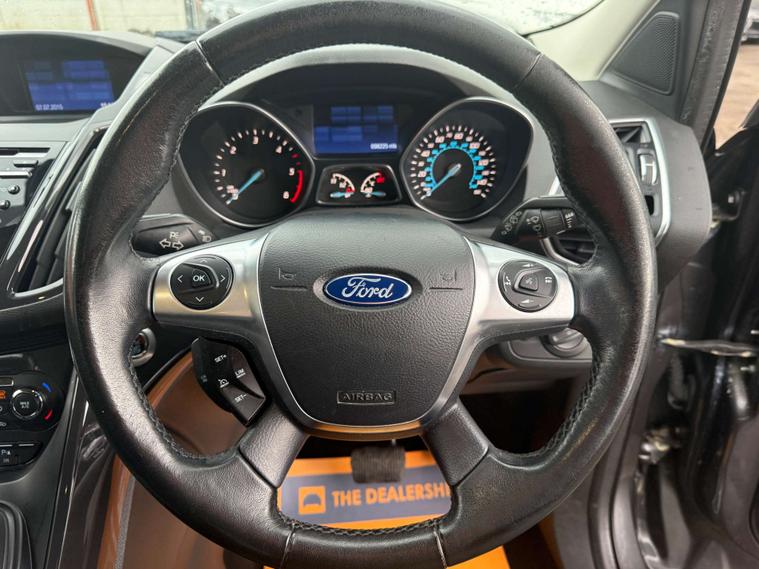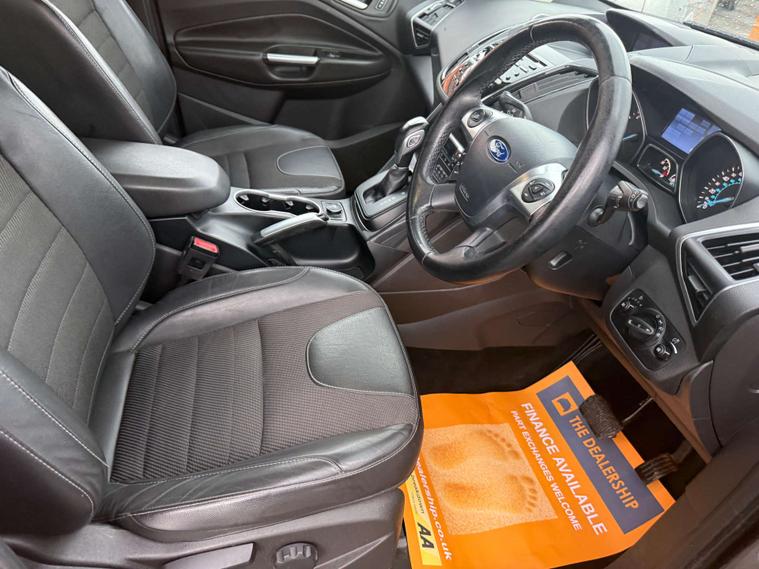 Inside, the Titanium trim offers a cabin that's as comfortable as your favourite armchair. It's got all the bells and whistles you'd expect, with a touch of luxury that makes every journey feel like a first-class experience. Whether you're navigating the urban jungle or cruising down the motorway, the Kuga's interior is a sanctuary of comfort and technology.