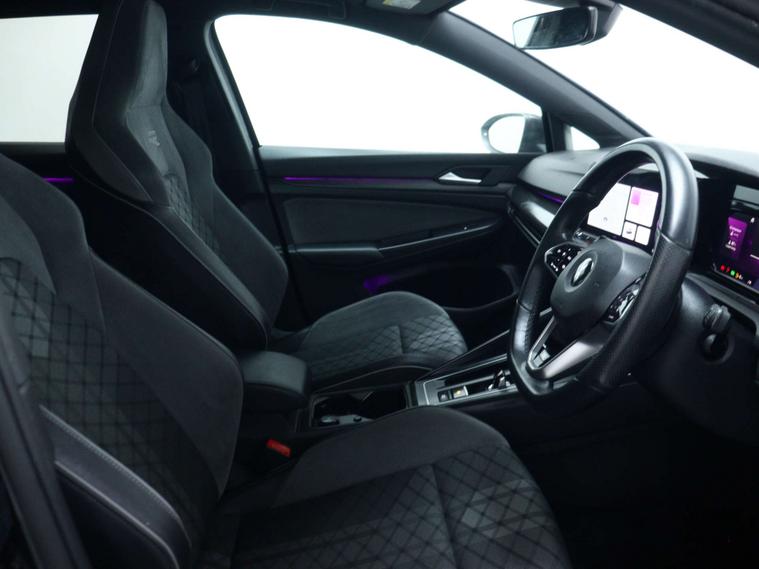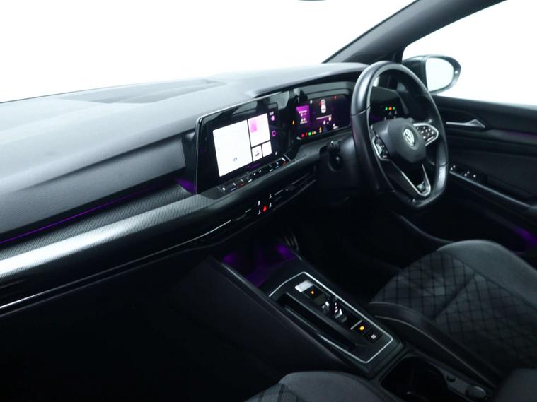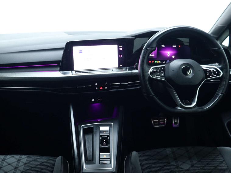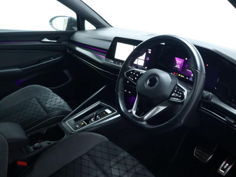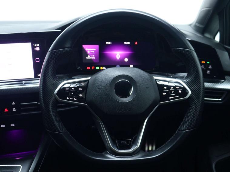 There are no confirmed factory-fitted extras verified on this specific car, which means the appeal here comes from the strong standard specification of the R-Line model itself. That includes 17in Valencia alloy wheels, Adaptive Cruise Control, App-Connect, front and rear parking sensors, electronic climate control, a 10.25in Digital Cockpit, Discover Navigation, interior ambient lighting, LED headlights incorporating turn signals, Lane Assist, and remote central locking with SAFELOCK and Keyless Go start-stop button. It is a well-rounded setup that gives this VOLKSWAGEN GOLF for sale the premium feel buyers expect from a later-generation Golf.