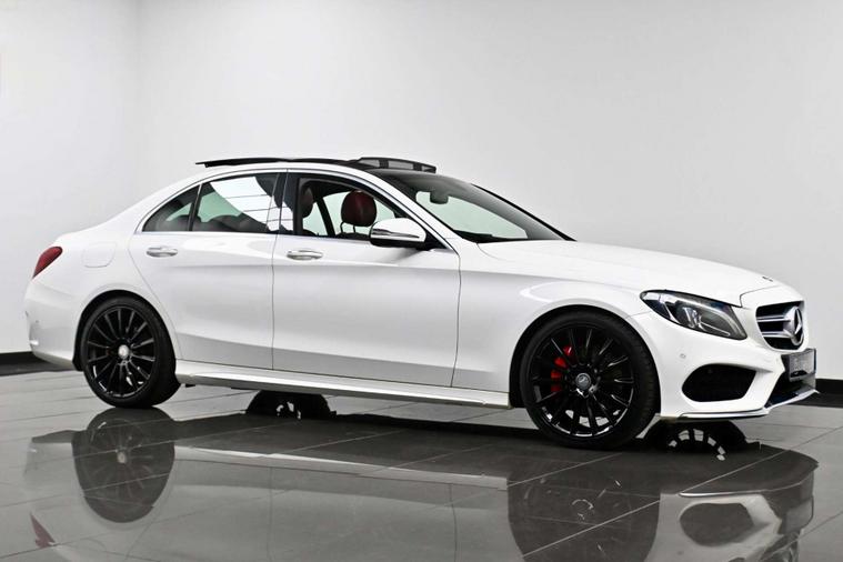 STUNNING C CLASS, IN GREAT CONDITION, WITH PANORAMIC GLASS ROOF, RED LEATHER INTERIOR, HEATED SEATS, PARKING SENSORS WITH CAMERA, 19 INCH BLACK ALLOYS, PRIVACY GLASS, NAVIGATION, MEDIA, TWO FORMER KEEPERS, SERVICE HISTORY, LONG MOT FEB 2027, WARRANTY AND FINANCE AVAILABLE, PX WELCOME, PLEASE CALL FOR MORE INFO
