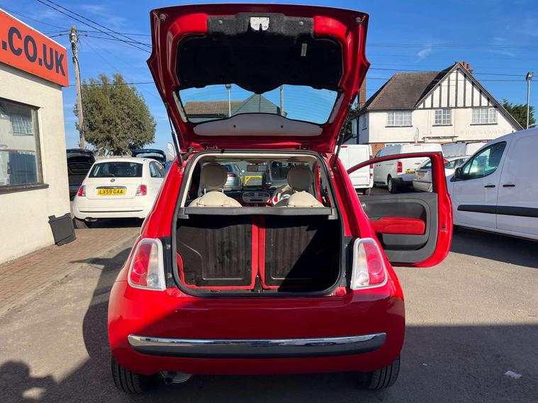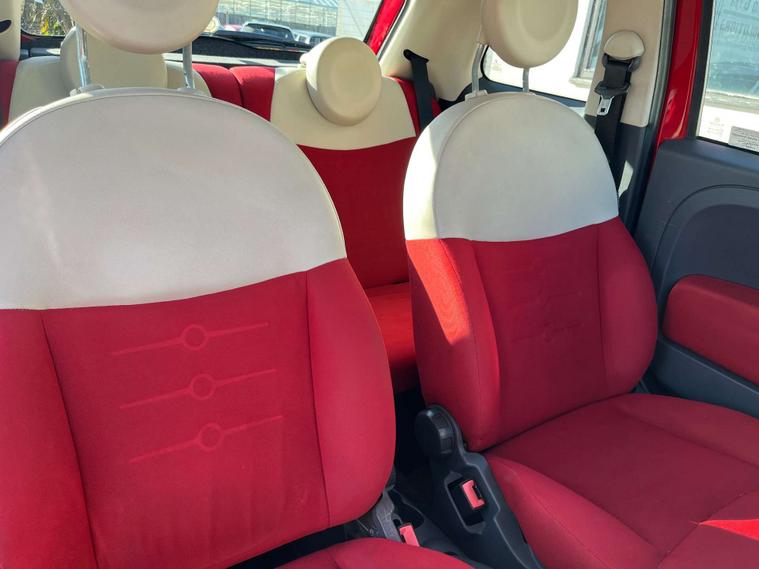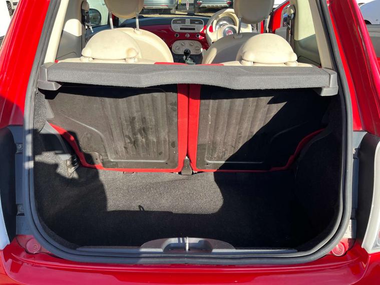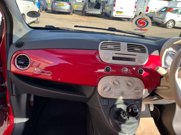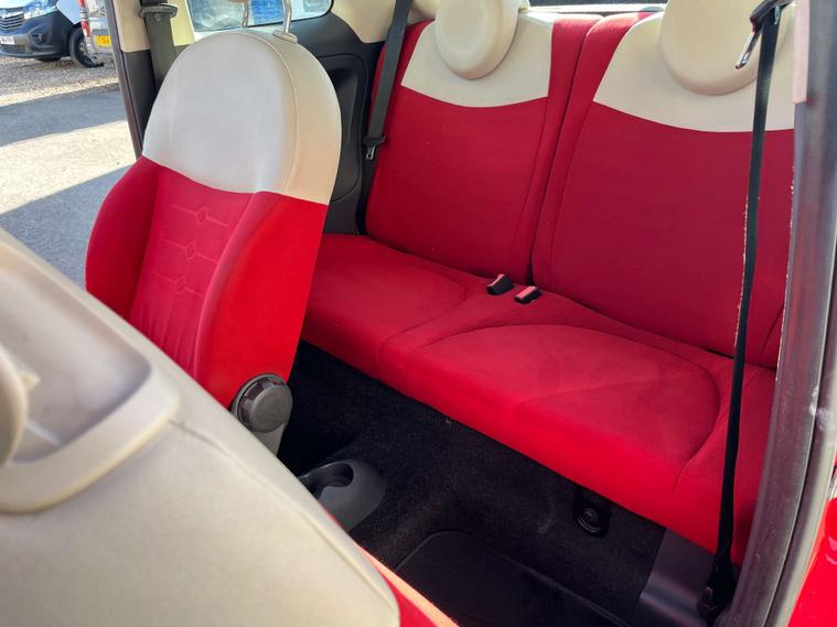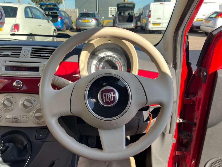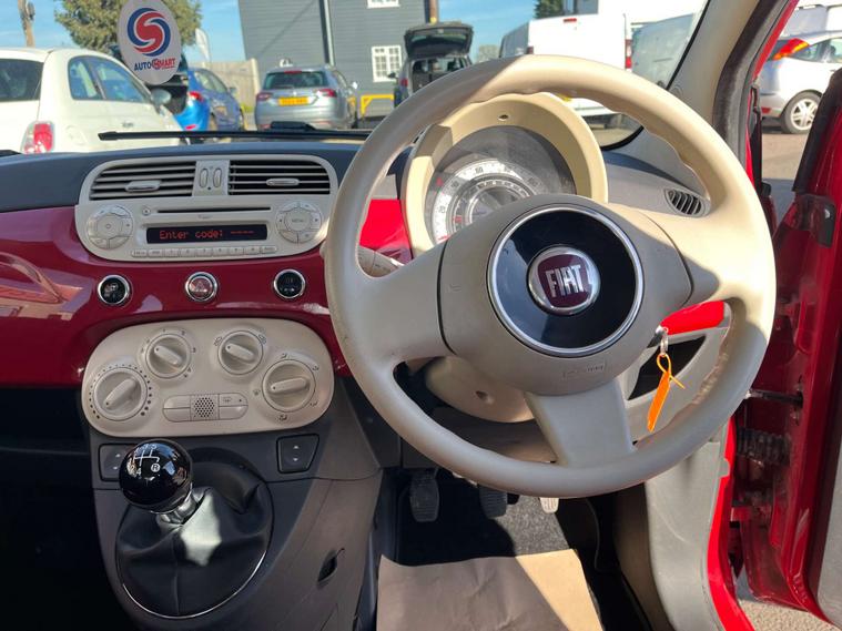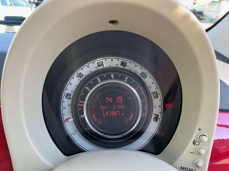 Finished in a vibrant red colour, this Fiat 500 also features 14-inch vintage wheel covers that add a touch of retro charm, as well as chrome door mirror housings that give it a modern and sophisticated look.