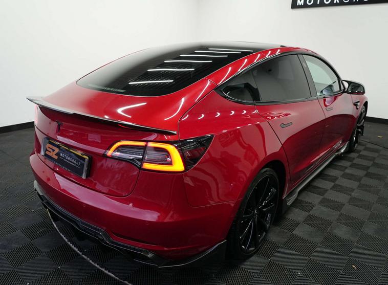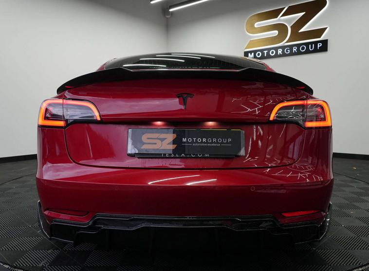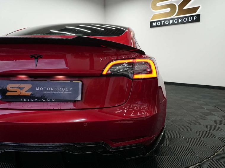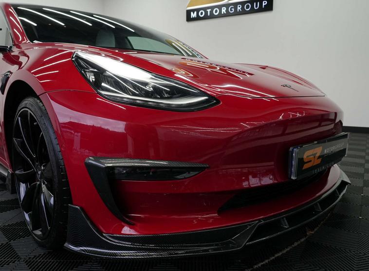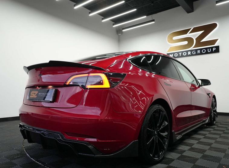 SZ MotorGroup Nottingham are pleased to offer this stunning Tesla Model 3 Dual Motor Performance Auto AWD (Performance Upgrade), REGISTRATION LB69 VMM. Presented in excellent condition throughout, this high-performance example benefits from a full carbon bodykit, 20” black alloy wheels, and a full black exterior pack, giving the vehicle an aggressive yet refined road presence.