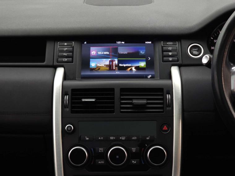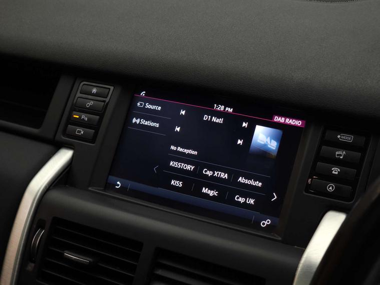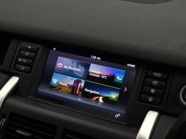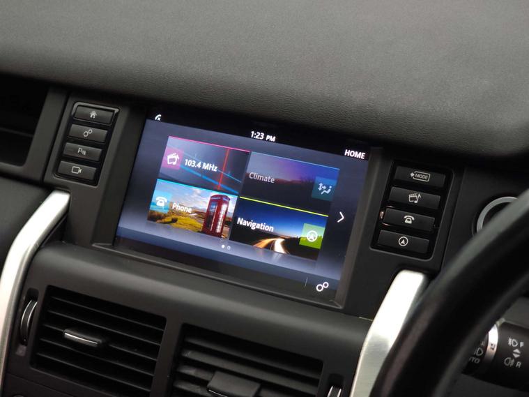 Specification highlights include lane departure warning, rear view camera, Terrain Response system, front and rear parking aid, cruise control with speed limiter, Meridian sound system, DAB digital radio, InControl Touch navigation, Bluetooth interface with audio streaming, electrically adjustable, heated and power-folding exterior mirrors, exterior styling pack, fixed panoramic roof, 18-inch alloy wheels, automatic high beam assist, xenon headlights with LED signature, gesture-controlled tailgate, dual-zone climate control, 8-way electric front seats with heating, hill descent control plus and hill start assist.