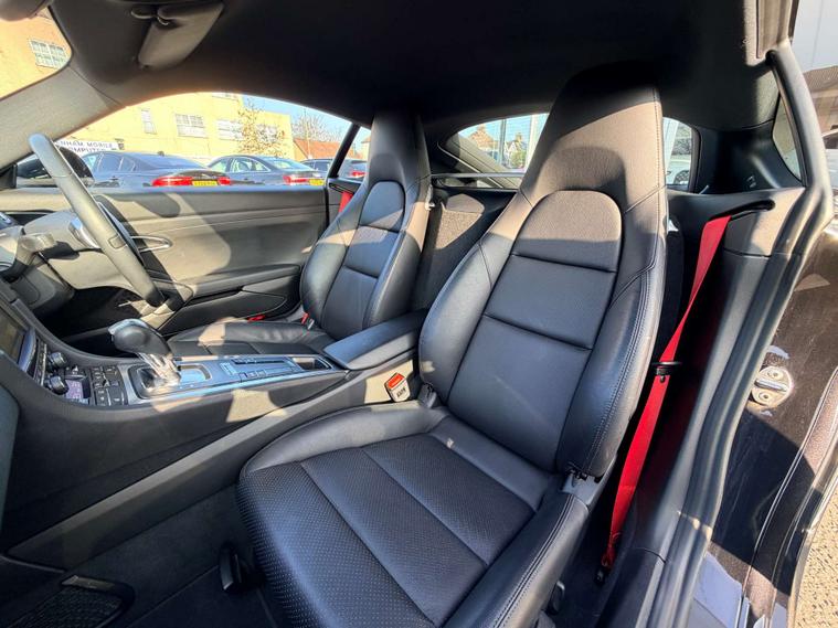 Step inside and be enveloped by the luxurious Basalt Black leather interior, where every detail has been meticulously crafted for your comfort and enjoyment. The Guards Red seat belts provide a bold contrast, adding a splash of colour and a nod to the car's racing heritage.