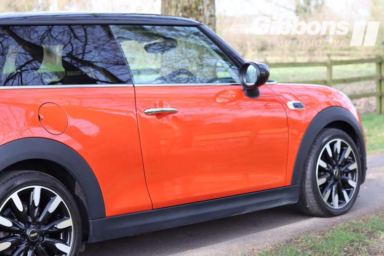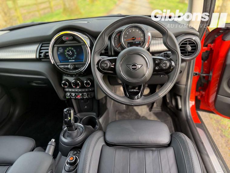 The Comfort Plus Pack, Darkened Rear Glass, Heated Front Windscreen, Navigation Pack, and Roof and Mirror Caps in Black are just a few of the additional features that make this Mini Hatch stand out from the rest. And let's not forget the striking Solaris Orange accents that add a pop of colour to this already eye-catching car.