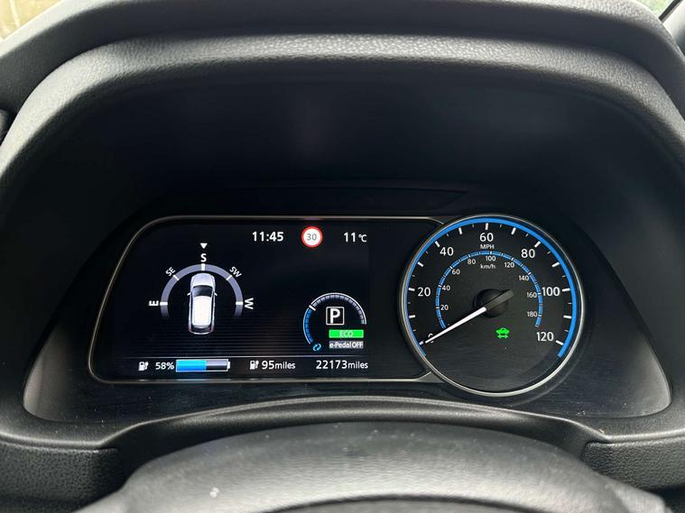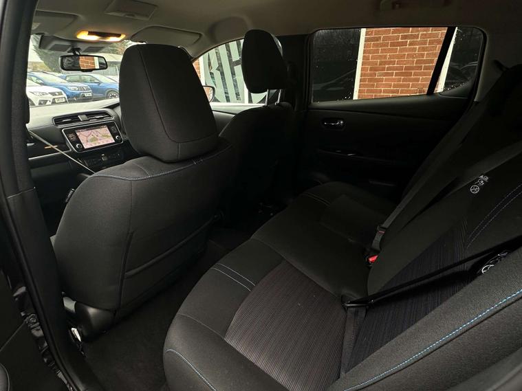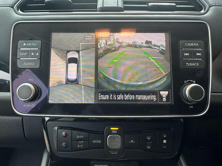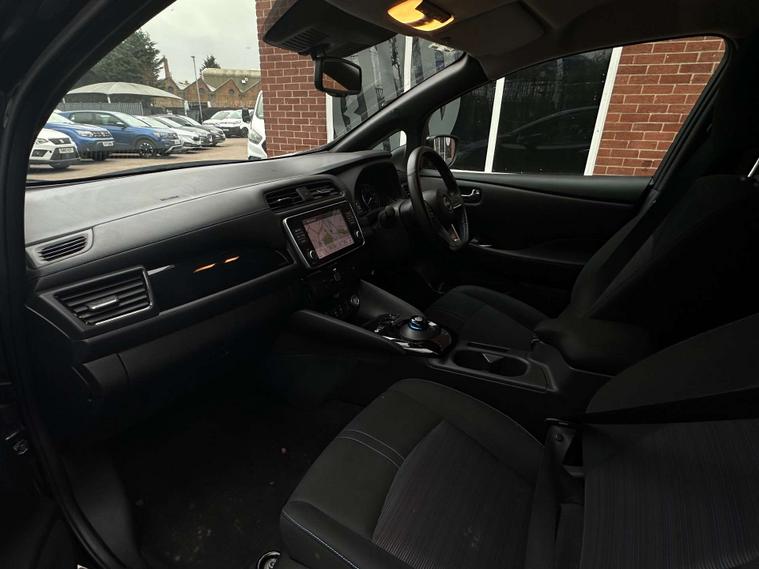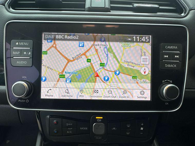 Service history - 2 stamps, Charge Cable - e-Pedal One-Pedal Driving, 360° Around View Camera, Apple CarPlay & Android Auto, Intelligent Safety Shield Driver Aids, Fast Charge Capability (CHAdeMO)DAB Digital, Radio, Parking Camera(s), Navigation System, Navigation HDD, Parking Sensor(s), Heated Seat(s), Cruise, Control, Climate Control, Cloth Trim, 17" Alloy Wheels, Metallic Paint, Privacy Glass