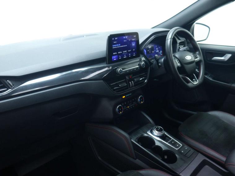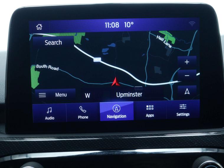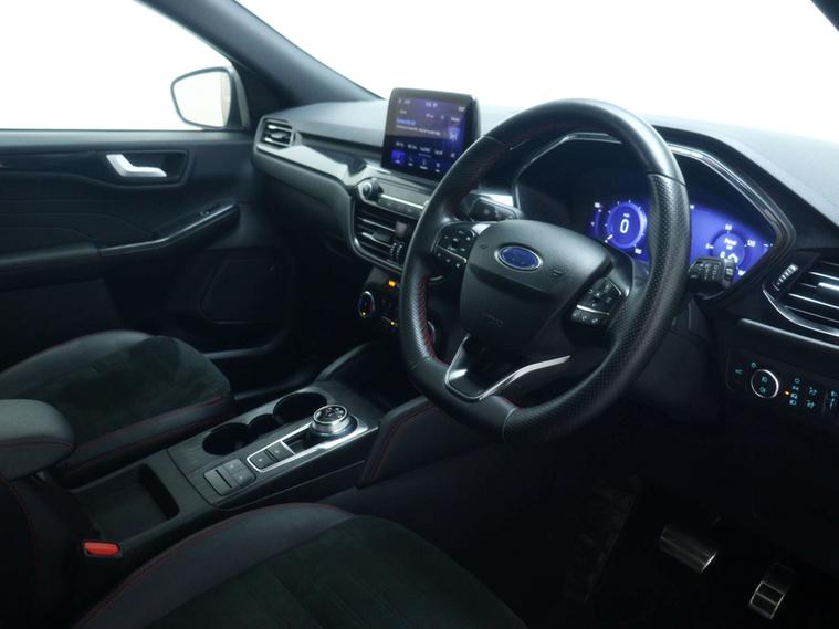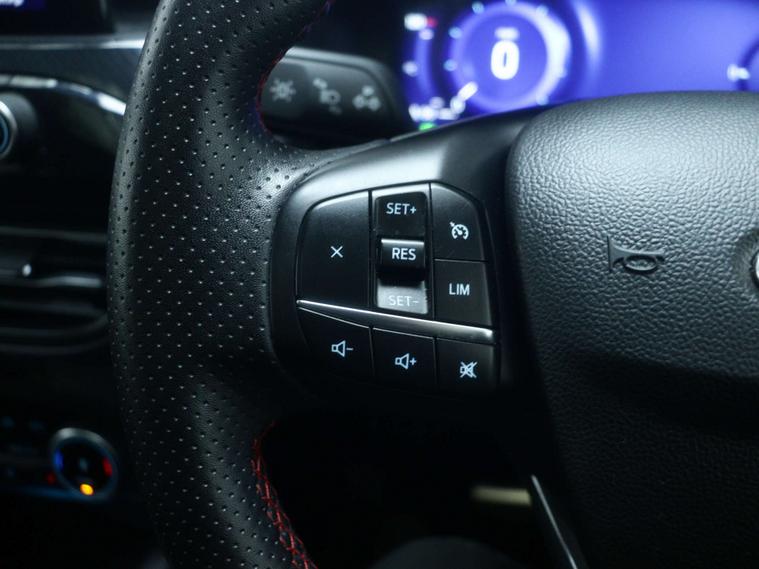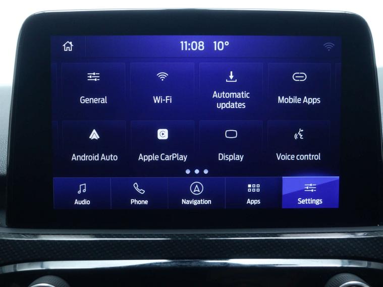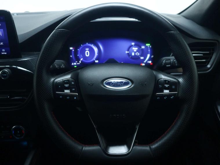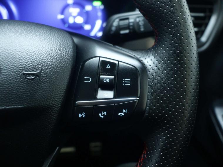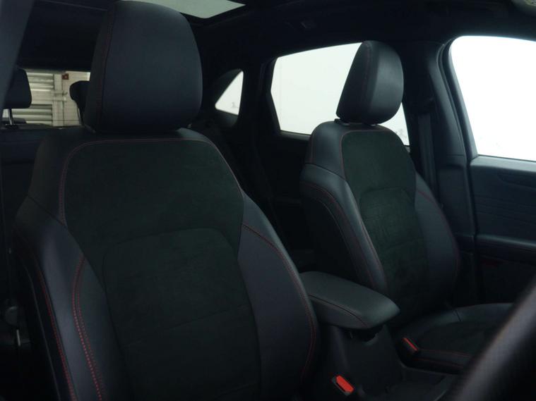 Inside, the FORD KUGA boasts a 10-way power adjustable driver's seat and 8-way manual passenger seat, ensuring comfort on every journey. The vehicle is equipped with electronic automatic temperature control for optimal climate management. Noteworthy features include the 19in alloy wheels with a high gloss machined finish, ambient lighting for a sophisticated cabin atmosphere, and dual exhaust tailpipes with a unique brushed stainless steel finish. The inclusion of the Ford Easy Fuel System and electric power assisted steering enhances convenience and driving pleasure.