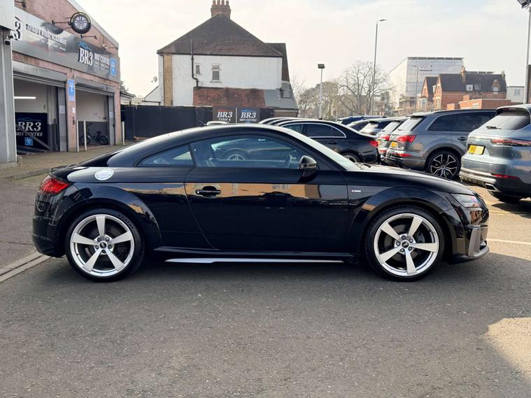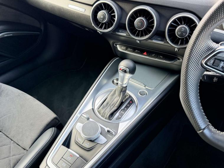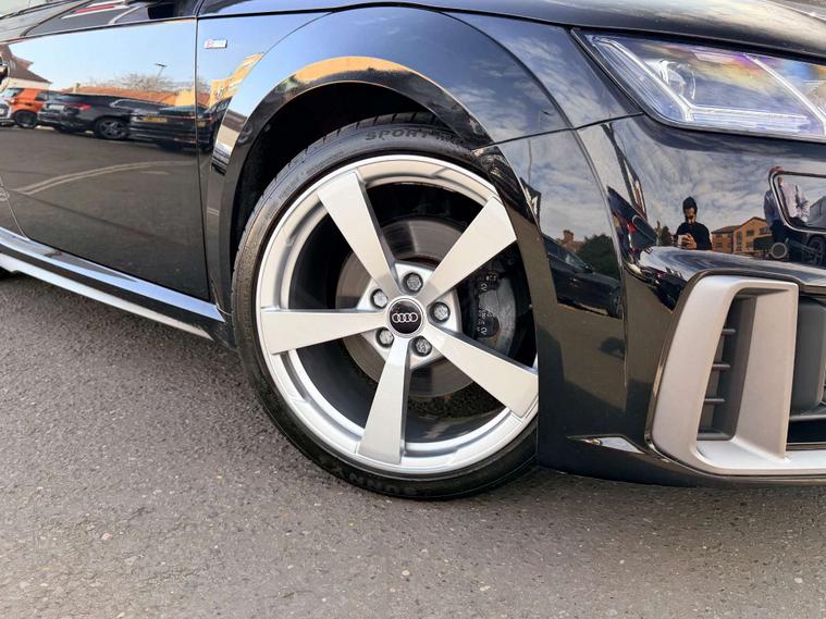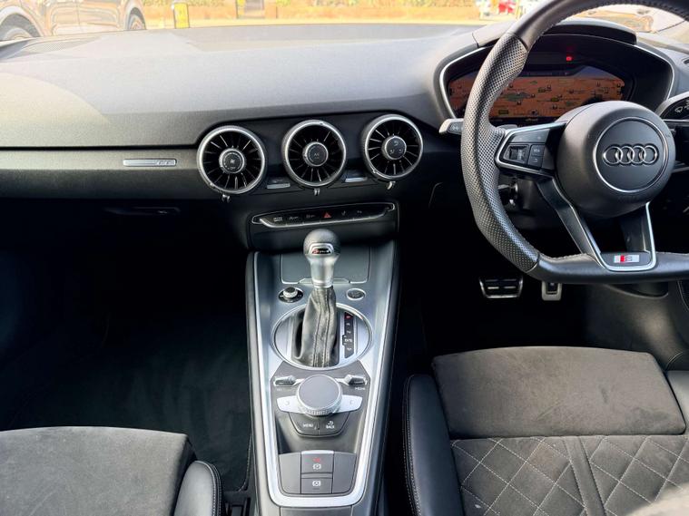 Finished in a sleek and sophisticated Mythos Black, the Audi TT exudes an aura of elegance and power. Its striking exterior is complemented by the 19-inch alloy wheels featuring a 5-arm blade design in a matt titanium look with a diamond cut finish, ensuring you turn heads wherever you go.
