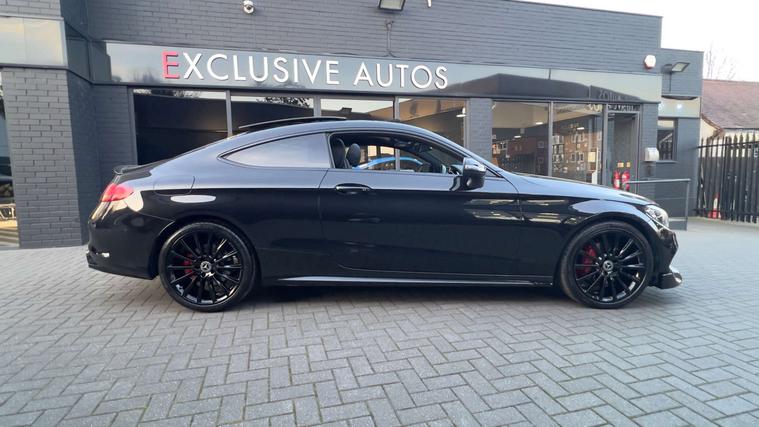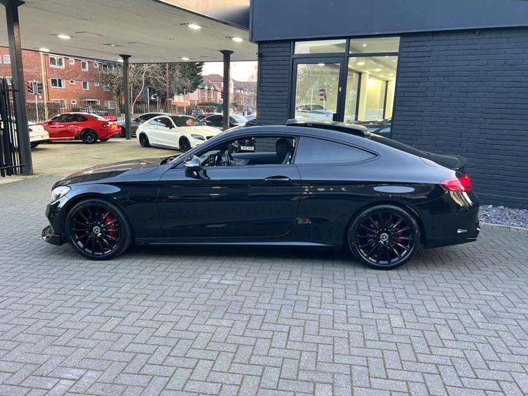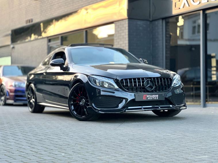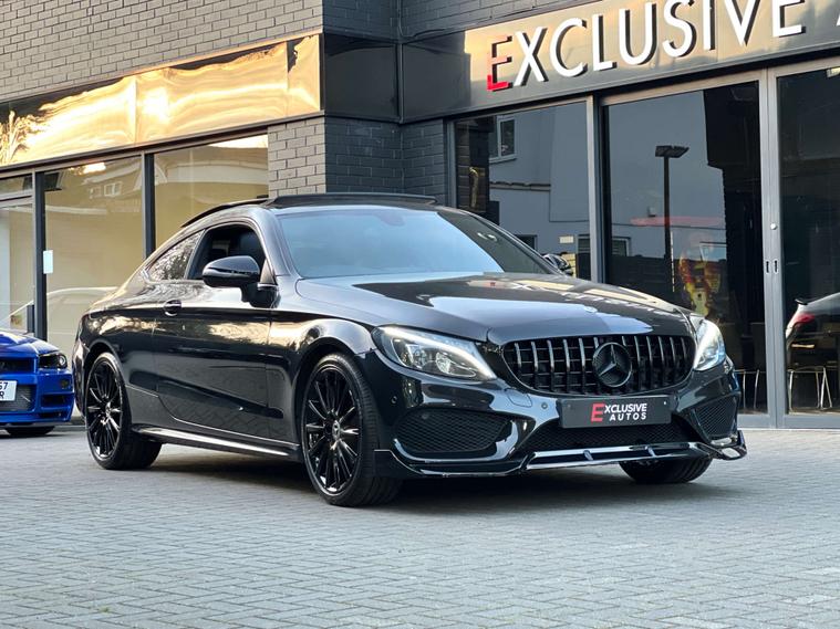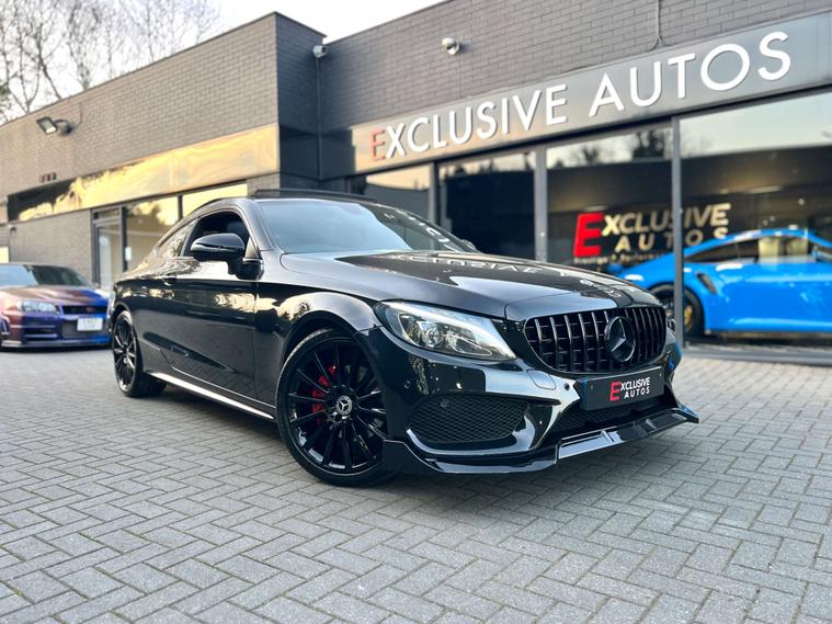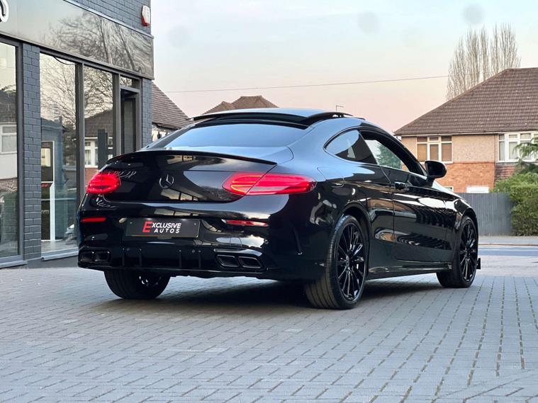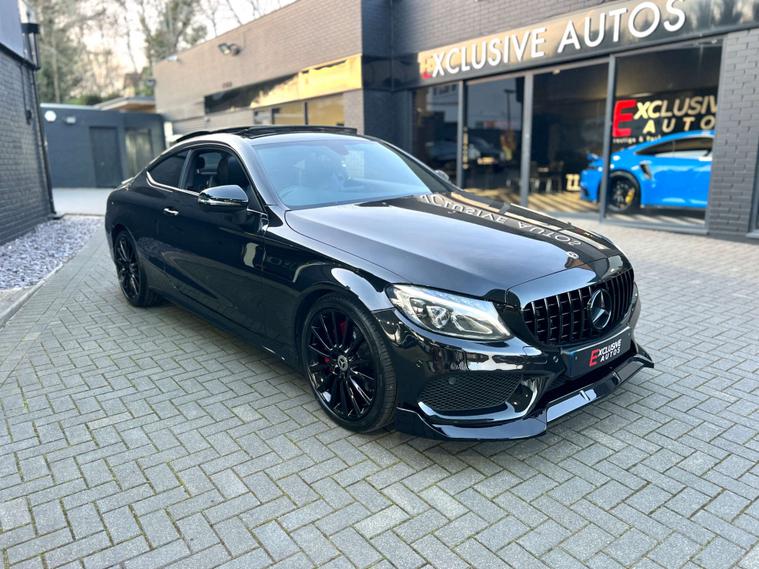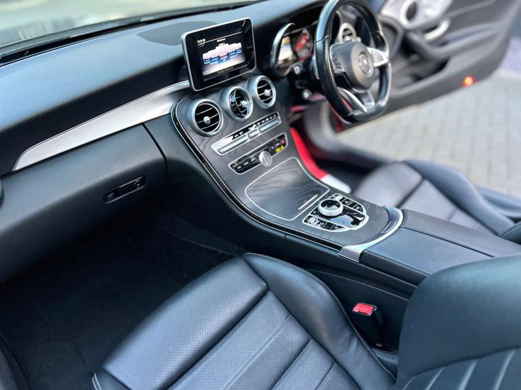PANORAMIC GLASS SUNROOF + C63 AMG STYLE BODYKIT + 19" BLACK ALLOYS + RED BRAKE CALIPERS + SAT NAV + BLUETOOTH + DAB RADIO + ELECTRIC FOLDING MIRRORS + REVERSE CAMERA + AUTO / PADDLES ON STEERING + HEATED ELECTRIC SEATS + DRL LIGHTS + REAR SPOILER