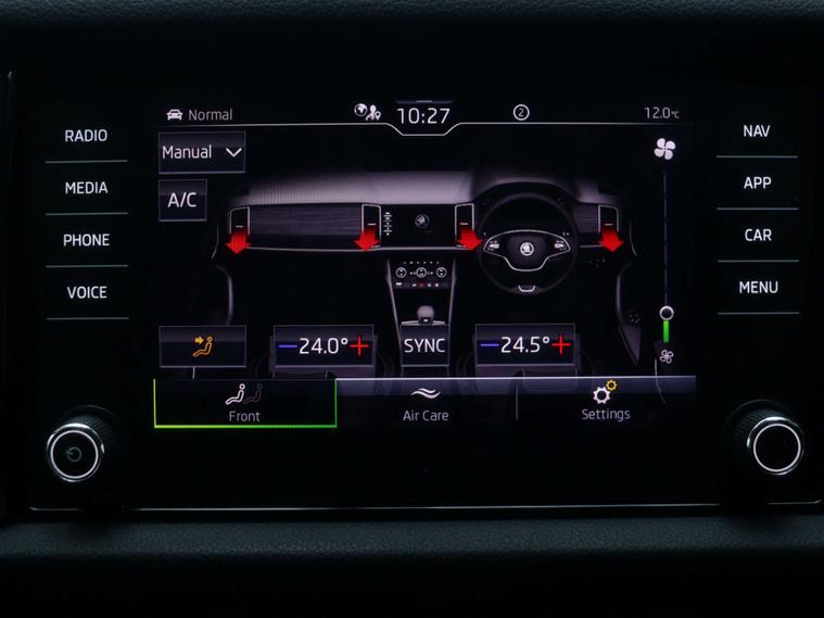 Step inside to find an array of impressive features that enhance your driving experience. The Amundsen Satellite Navigation system with an 8-inch touchscreen display and integrated Wi-Fi ensures you stay connected and on the right path. Enjoy the luxury of a 2-spoke leather multi-function steering wheel, and keep your cool with auto-dimming rear-view mirror technology. The 19-inch Cursa Anthracite alloy wheels and chrome styling, including the front grille and window surround, add a touch of elegance to its robust exterior.