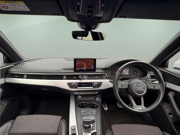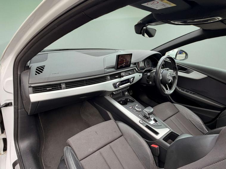 Introducing the stunning Audi A4 2.0 A4 S Line TDI Semi-Auto 5dr in a sleek White finish. This premium vehicle comes loaded with extras, including 19in Alloy Wheels with a striking Matt Titanium Look and Diamond Cut Finish, a luxurious Panoramic Glass Sunroof, and the elegant Glacier White exterior.