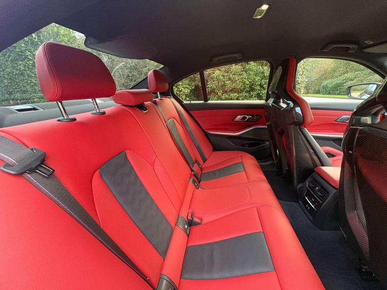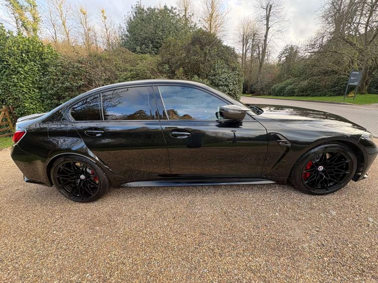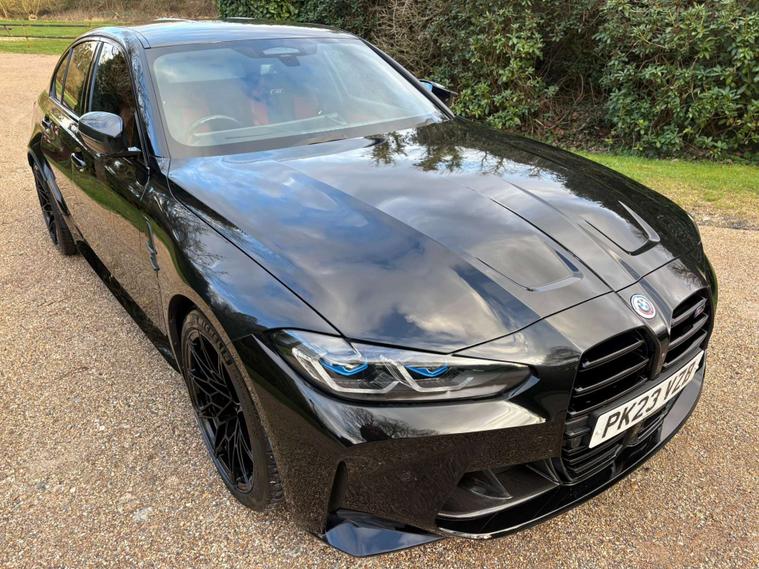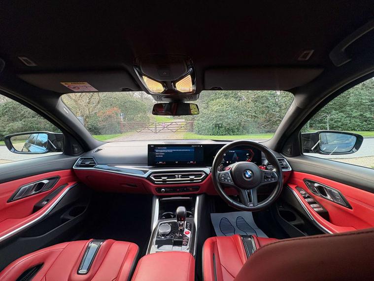 This 2023 BMW M3 BiTurbo Competition is a rare find, boasting a full dealership service history and having had only one owner from new. This exceptional example features a powerful 3.0L petrol engine paired with a four wheel drive drivetrain, all meeting the Euro 6 emission class. The Competition trim is further enhanced by the Ultimate Package, which includes adaptive cruise control, advanced LED and Laser headlights, keyless entry, and comprehensive parking assistance with a 360 degree camera, front and rear cameras, and sensors. Inside, you'll appreciate the M Carbon Bucket Seats with memory function, a heated steering wheel, and distinctive BMW M 50 Year Badges, complemented by the M Carbon Exterior Package.