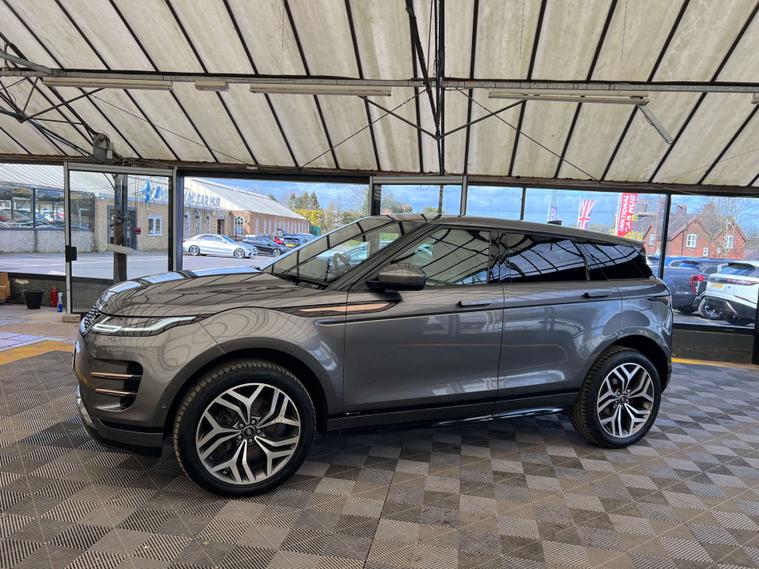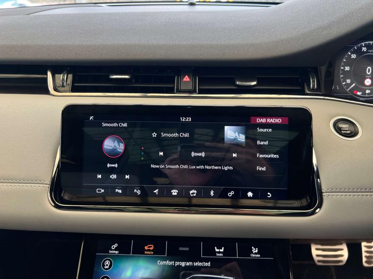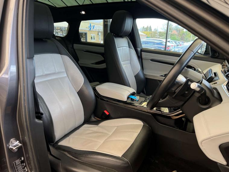 Finished in the sophisticated Corris Grey, the Land Rover Range Rover Evoque exudes elegance and modernity. Its sleek design is complemented by the Light Oyster Morzine headlining, creating an interior that is as inviting as it is luxurious.