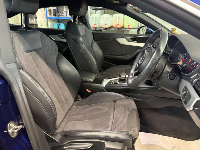 Dressed in a captivating shade of blue, the Audi A5 exudes elegance and sophistication from every angle. Its sleek lines and dynamic silhouette are a testament to Audi's commitment to crafting vehicles that are as beautiful as they are functional. The S Line trim adds an extra touch of sportiness, ensuring that you turn heads wherever you go.