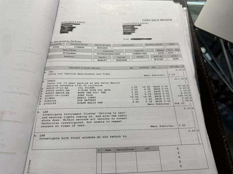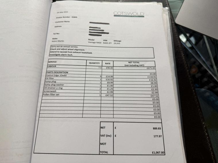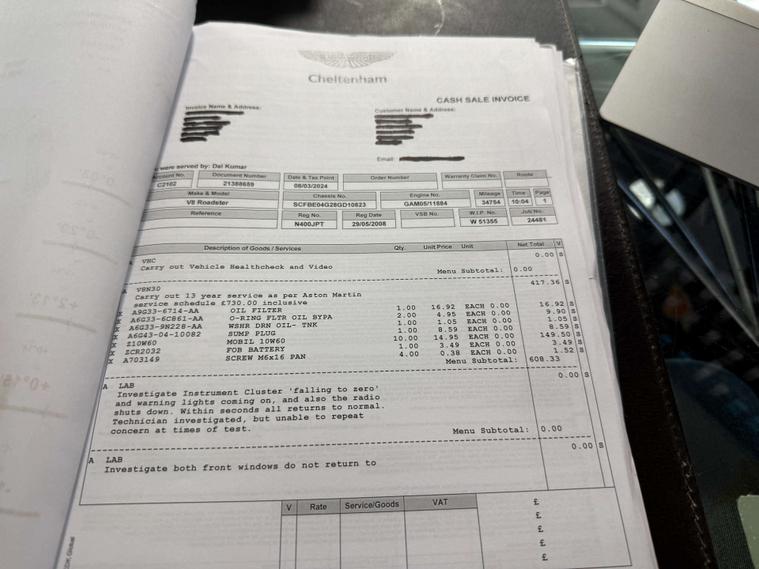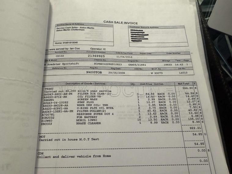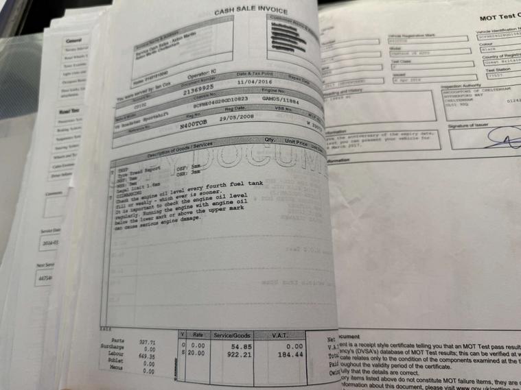 Full service history with accompanying invoices