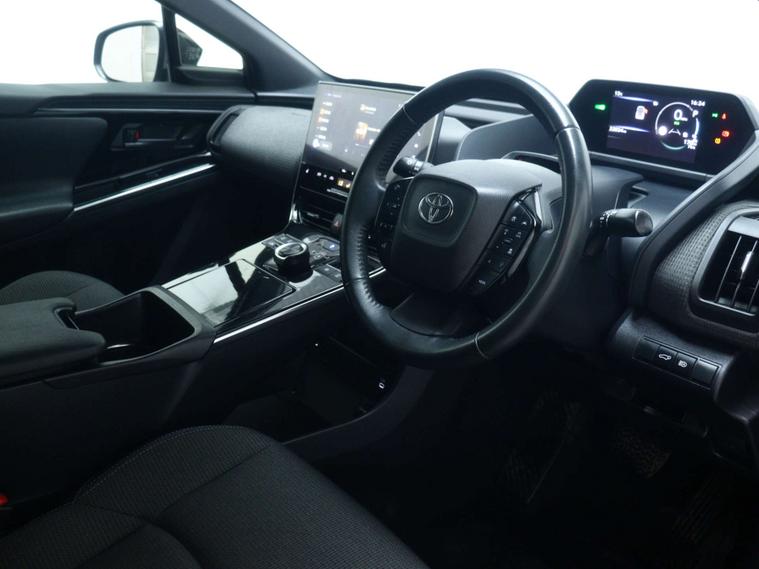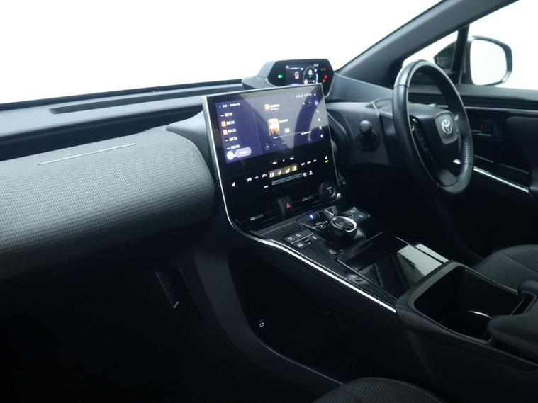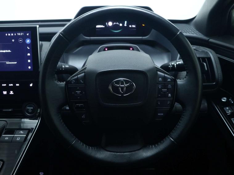 Inside, the TOYOTA BZ4X impresses with its 12.3in HD Toyota Smart Connect Multimedia System, which includes Wireless Smartphone Integration for both Apple CarPlay and Android Auto. Navigating your journeys is effortless with Go Navigation. The 360 Panoramic View Monitor ensures parking is a breeze, while the Adaptive High Beam and Automatic Headlight Levelling enhance safety during night driving. Comfort is prioritized with features like the 3-Spoke Leather Steering Wheel and ambient lighting on the interior door handles.