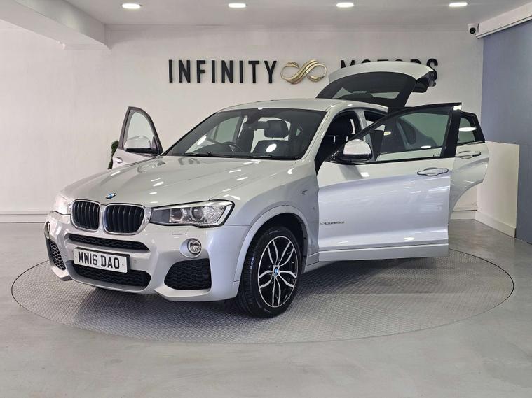 Infinity Motors presents the stunning BMW X4 2.0 X4 xDrive 20d M Sport Auto 4WD 5dr. This exceptional vehicle, finished in sleek Silver, is the epitome of luxury and performance.