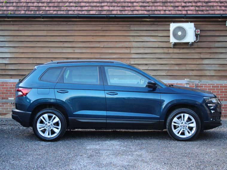 ***FOR VIEWINGS AND TEST DRIVES CALL US ON 01747692736 TO BOOK AN APPOINTMENT***Low mileage automatic Karoq SE Tech fitted with Skoda's 1.5 litre turbo petrol ULEZ compliant engine producing impressive power of 150 BHP and great fuel economy finished in blue metallic with equipment including touch screen media unit with sat nav, DAB radio and apple car play resulting in the ability to mirror the apps from your Iphone onto the car media screen including Google maps and Spotify, media connections, bluetooth, parking sensors, air conditioning, auto lights, cruise control, roof rails, alloy wheels, removable rear seats and more, 36000 miles, service history, high up driving position with easy access in and out of the cockpit***PART EXCHANGE AVAILABLE***USE THE FINANCE CALCULATOR ON OUR WEBSITE dealer's website AND QUOTE YOURSELF A MONTHLY PAYMENT FIGURE TODAY WITH ZERO DEPOSITS AVAILABLE***