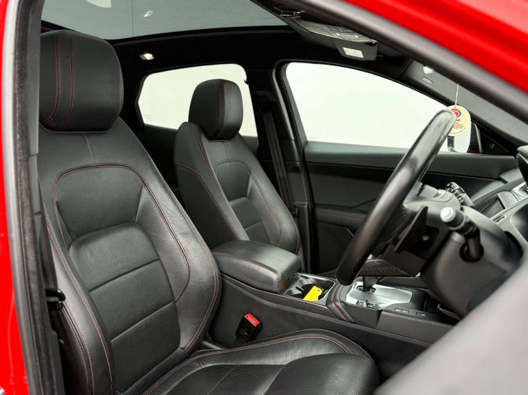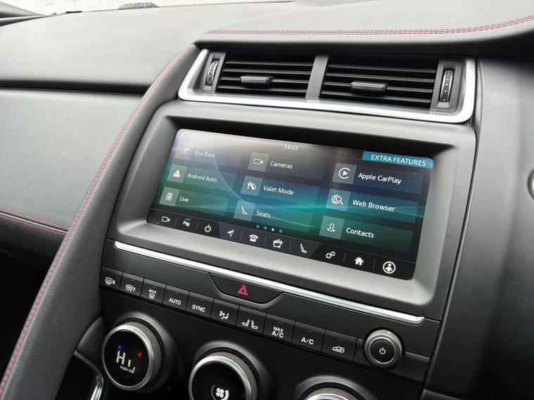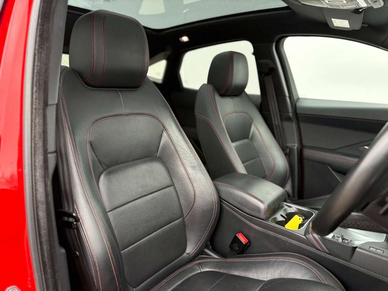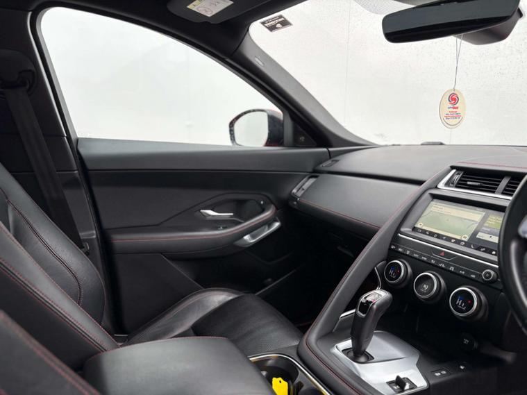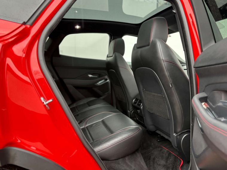 Dressed in a striking Red finish, the Jaguar E-pace commands attention on every road. Its bold exterior is perfectly complemented by the sophisticated Grained Leather interior in Ebony, accentuated with Flame Red Stitching. This meticulous attention to detail extends throughout the Ebony-Ebony interior, creating an atmosphere of refined luxury that envelops you in comfort and style.
