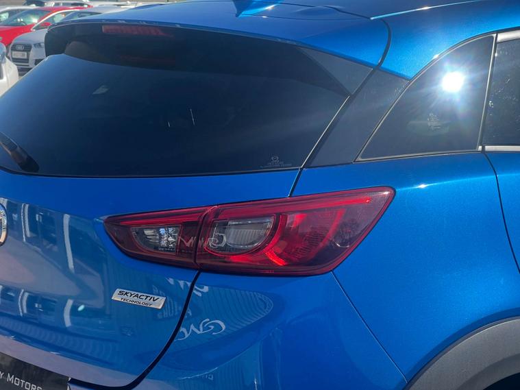 Finished in a striking blue, the Mazda Cx-3 exudes sophistication and elegance, turning heads wherever it goes. Its sleek design is complemented by a spacious and well-appointed interior, offering both comfort and convenience for every journey.