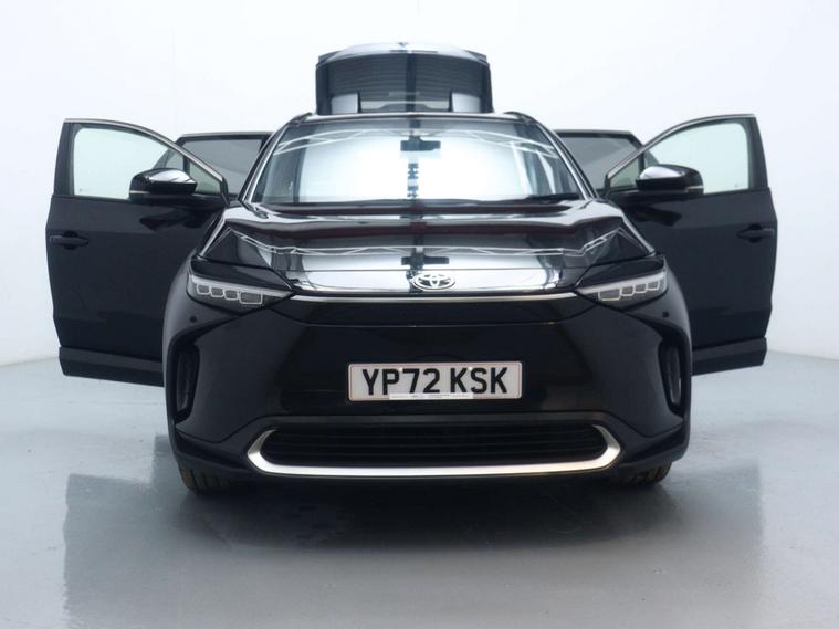 On this specific car, there are no confirmed factory-fitted extras verified beyond standard specification, which means complete clarity on what is fitted. The standard equipment on every TOYOTA BZ4X Vision of this type is already impressive, including 20in alloy wheels - 5 double spoke, adaptive cruise control switch on steering wheel, ambient lighting on interior door handles, blind spot monitor - BSM, electric windows - front and rear, front parking sensors with automatic object braking, intelligent adaptive cruise control, LED headlights, privacy glass, reversing camera, and wireless smartphone integration including Apple CarPlay and Android Auto.