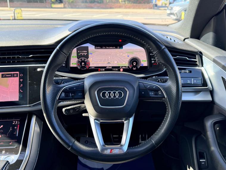 The Audi Q8 is equipped with a Full Audi Service History, guaranteeing peace of mind and reliability. Immerse yourself in the crystal-clear sound of the Bang and Olufsen Premium Sound System, elevating every drive with concert-quality audio.