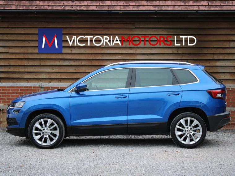 ***FOR VIEWINGS AND TEST DRIVES CALL US ON 01747692736 TO BOOK AN APPOINTMENT***One owner low mileage automatic Karoq SE L fitted with Skoda's 1.5 litre turbo petrol ULEZ compliant engine producing impressive power of 150 BHP and great fuel economy finished in blue metallic with equipment including leather and suede trim with heated seats, touch screen media unit with sat nav, DAB radio and apple car play resulting in the ability to mirror the apps from your Iphone onto the car media screen including Google maps and Spotify, media connections, bluetooth, parking sensors, air conditioning, auto lights, cruise control, roof rails, alloy wheels, removable rear seats and more, 1 owner, 29500 miles, service history, high up driving position with easy access in and out of the cockpit***PART EXCHANGE AVAILABLE***USE THE FINANCE CALCULATOR ON OUR WEBSITE dealer's website AND QUOTE YOURSELF A MONTHLY PAYMENT FIGURE TODAY WITH ZERO DEPOSITS AVAILABLE***