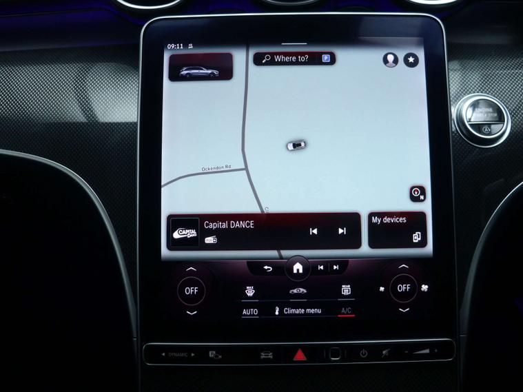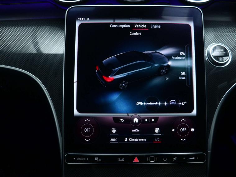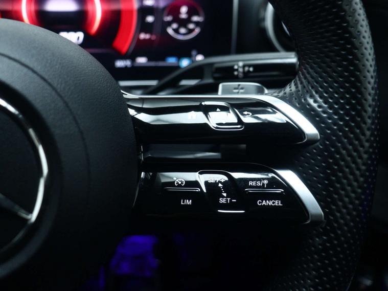 On this specific car, there are no confirmed factory-fitted extras verified beyond standard specification, which means the appeal is in the strength of the original AMG Line package itself. Standard equipment includes 18in AMG 5-spoke alloy wheels in Tantalite Grey with a high-sheen finish, ambient lighting, Blind Spot Assist, electric windows with one-touch opening and closing, the Parking Package with Reversing Camera, SPEEDTRONIC cruise control with variable speed limiter, and THERMATIC two-zone automatic climate control. It is a well-judged specification that gives this petrol hybrid estate the premium feel buyers expect from a modern Mercedes-Benz.