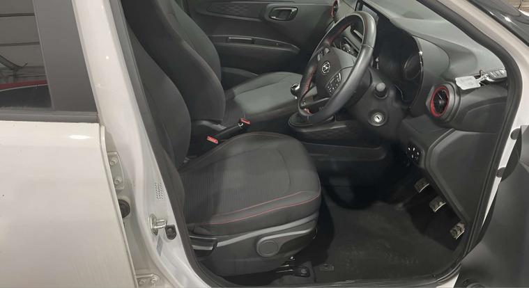 Finished in a sleek Polar White exterior, this Hyundai I10 is a real head-turner. The interior features comfortable Cloth seats in Black with Flame Red Stitching, adding a touch of sophistication to the cabin.