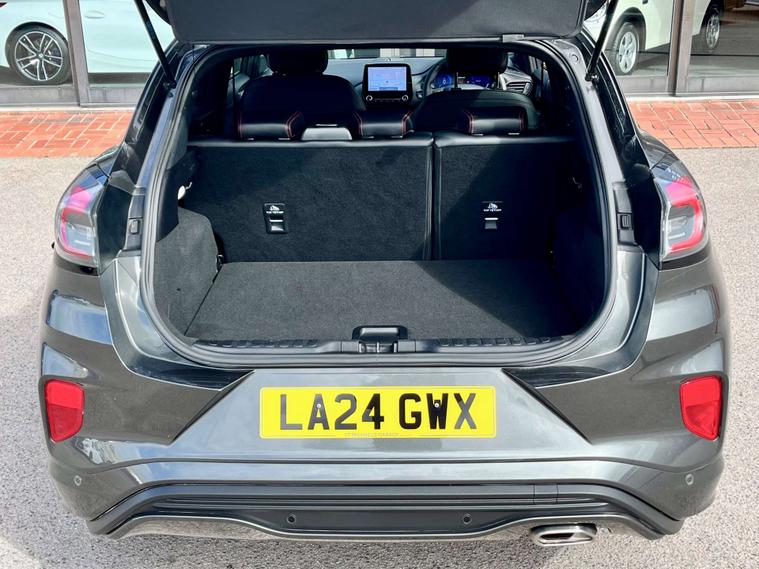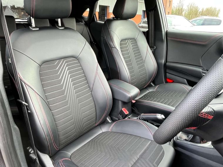Finished in a sleek Metallic Megnetic Grey exterior, this Ford Puma is a head-turner wherever it goes. The added touch of Partial Premium Sensico in Black with Red Stitching elevates the interior to a whole new level of luxury.