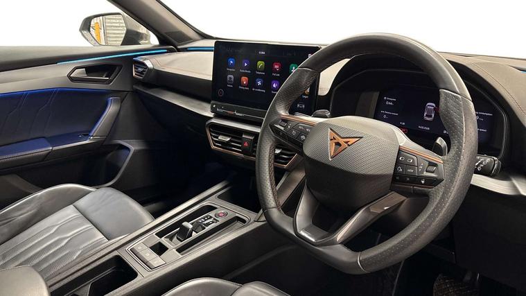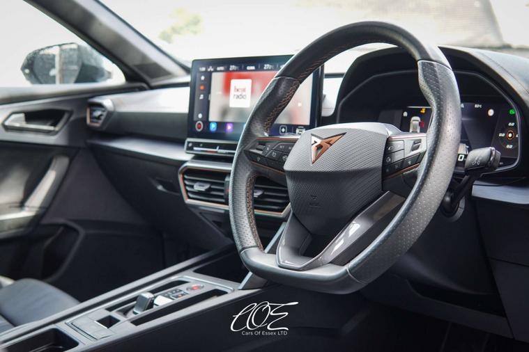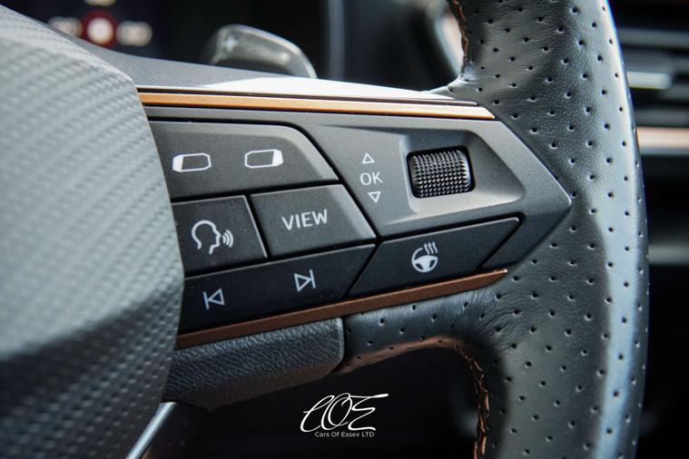 SPECIFICATION HIGHLIGHTS - CUPRA Warranty Remains Until Aug 2026 / Cruise Control / Lane Change Assist / Winter Pack / Rear View Camera / Smart Wraparound Interior Lighting / Heated Front Seats / Heated Flat Bottom Steering Wheel / Digital Dash / Wireless Apple Car Play / Auto Lights & Auto Wipers / Privacy Glass / 19 Inch Ally Wheels / Voice Control / Wireless Charging / 12'' Touch Screen Display / High Beam Assist / Electric Folding Mirrors / DAB Radio / Bluetooth / Dynamic Headlight Range Control / Daytime Running Lights / Keyless Entry / Plus Much More
