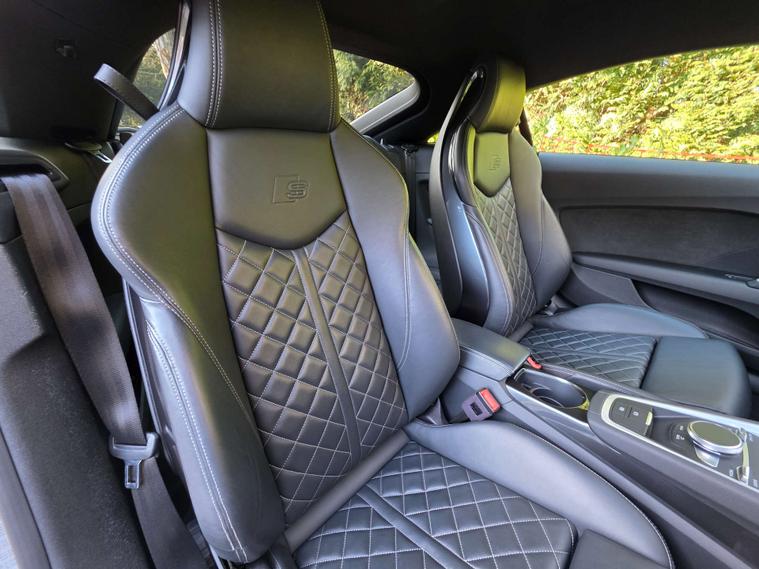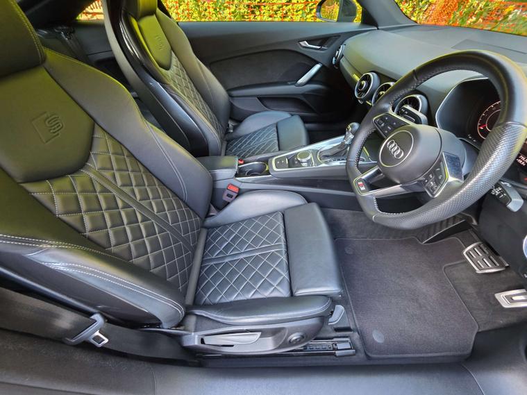 This 2021 Audi TT TFSI Black Edition boasts an exceptionally low mileage of just 18, 330 miles, a truly remarkable figure for its age, and comes with a full dealership service history. This Euro 6 compliant 2.0 litre petrol model, presented in the sought after Black Edition trim, has a clear vehicle history check. Inside, you'll find the comfort of heated front seats upholstered in luxurious Fine Nappa Leather with Super Sport seats featuring an S embossed logo in black, complemented by the advanced Technology Package which includes Bluetooth connectivity. The striking 20 inch alloy wheels in a Matt Titanium, 5 spoke V design with a diamond cut finish further enhance its sophisticated appearance.