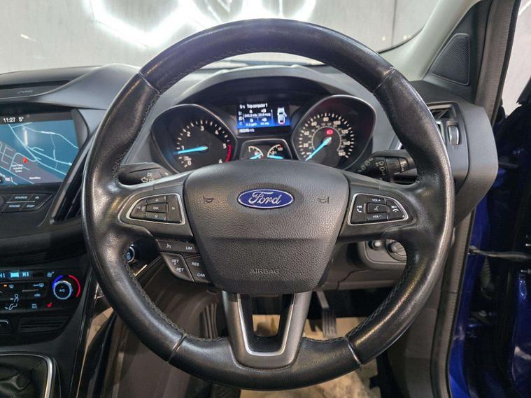 SYNC 3 8” touchscreen with DAB and navigation, Apple CarPlay/Android Auto, voice control, Bluetooth, USB, 12V sockets (cabin + boot), keyless entry & start, cruise control with active speed limiter, trip computer, rear parking sensors, rain-sensing wipers, auto-dimming mirror, ABS, ESP, EPAS, hill start assist, tyre pressure monitoring, ISOFIX, Thatcham Category 1 alarm and a full airbag safety system including driver knee and curtain airbags.