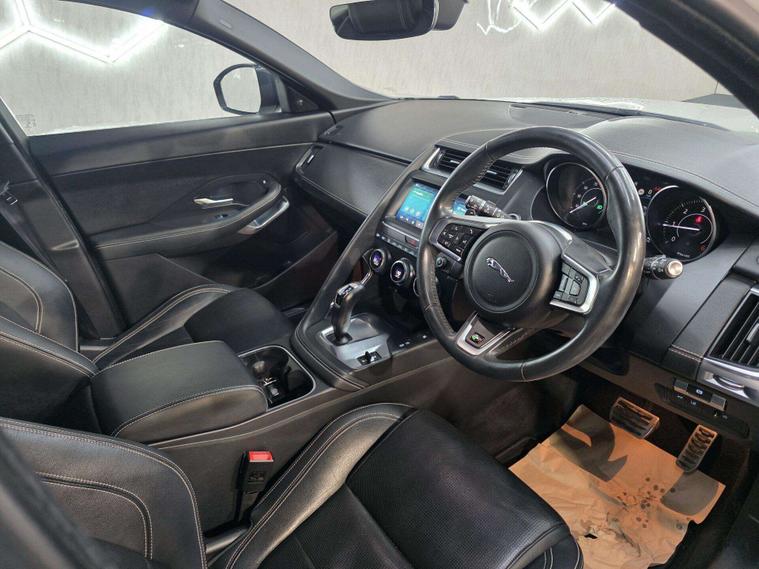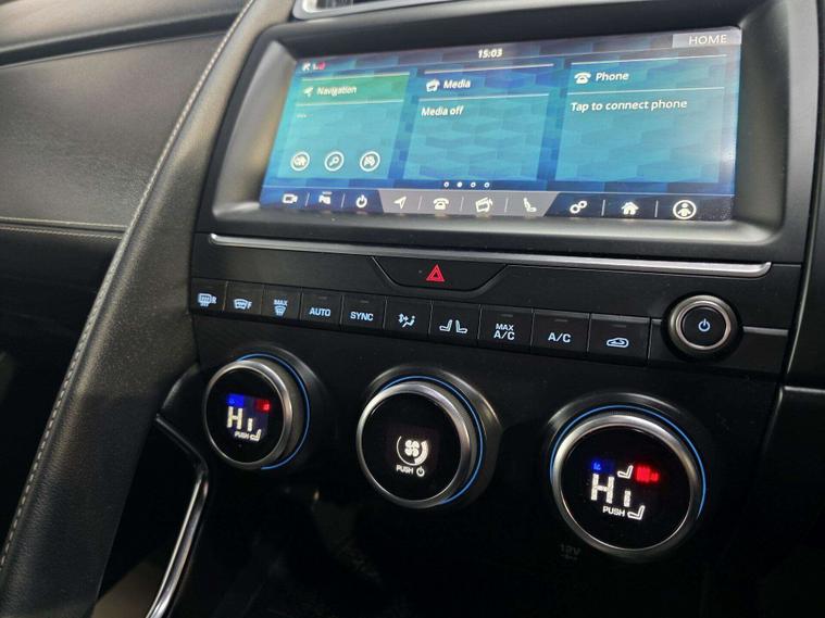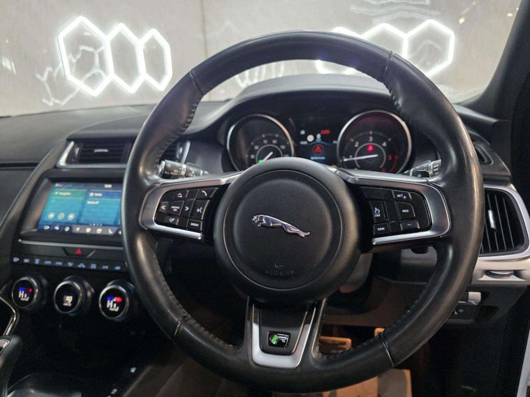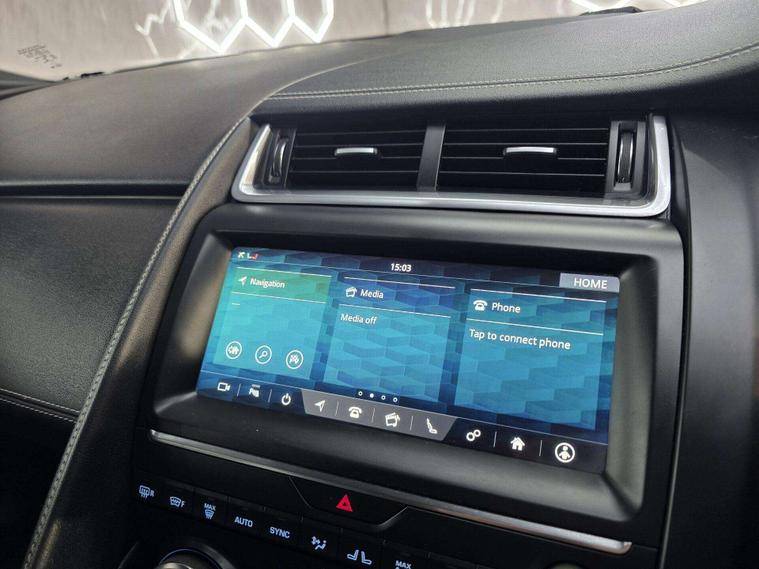 10” Touch Pro infotainment with Navigation Pro, Apple CarPlay & Android Auto, DAB/AM-FM radio, Bluetooth, Pro Services with Wi-Fi hotspot, 125W sound system, rear view camera, front & rear parking aids, cruise control with speed limiter, JaguarDrive Control, all-surface progress control, dynamic stability control, emergency braking, lane keep assist, traffic sign recognition with adaptive speed limiter, torque vectoring by braking, tyre pressure monitoring, electric parking brake, keyless push-button start and a full suite of airbags and safety systems.