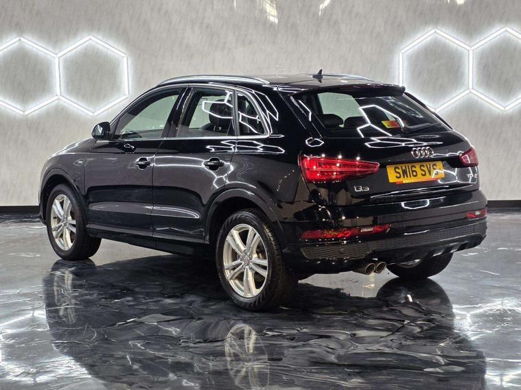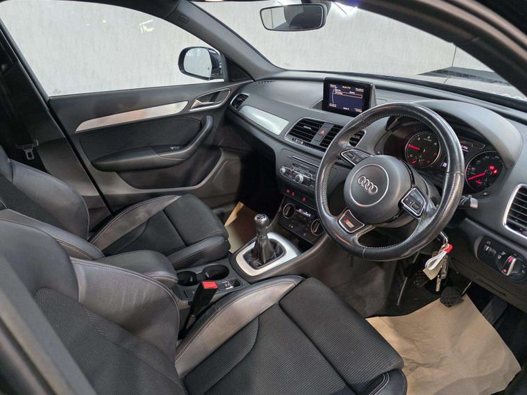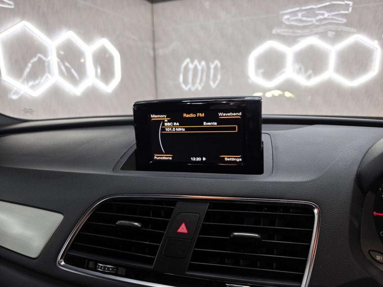 Inside, you’re welcomed by S line sports seats, black cloth headlining, brushed aluminium inlays and a 3-spoke leather multifunction steering wheel. Comfort and tech are covered with dual-zone climate control, Audi Drive Select, electric lumbar support, power tailgate, rear parking sensors, Bluetooth, DAB radio and a 6.5in MMI display with SD card navigation preparation.