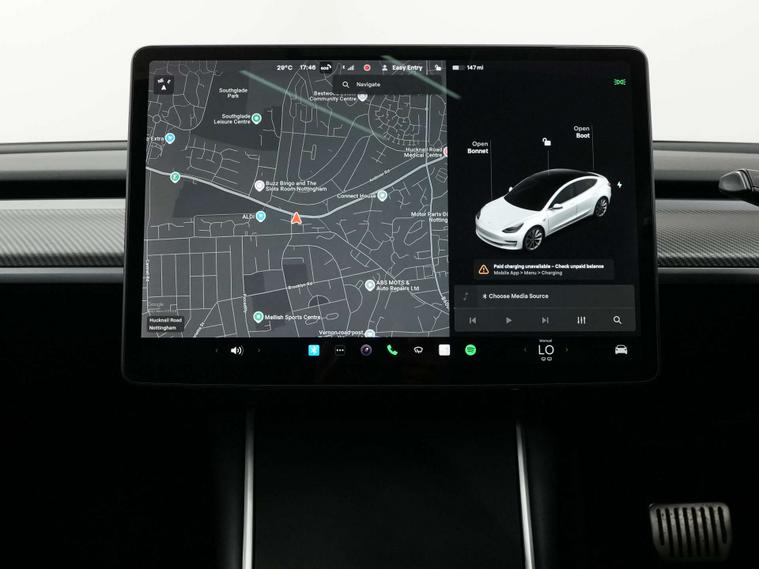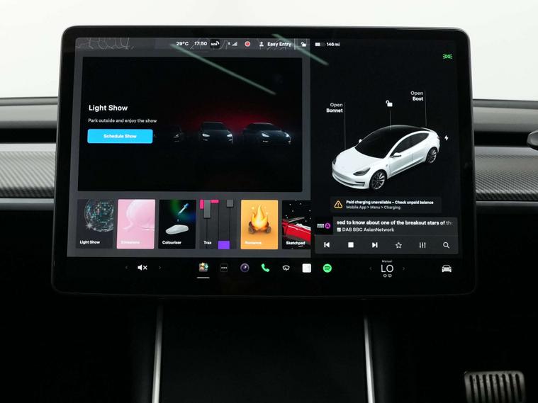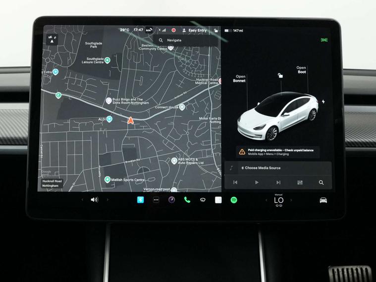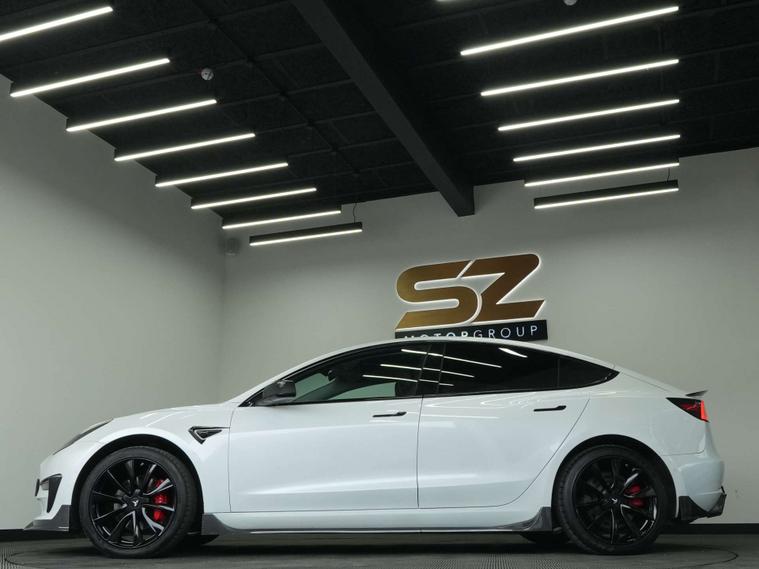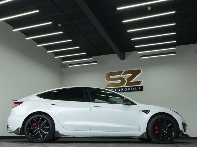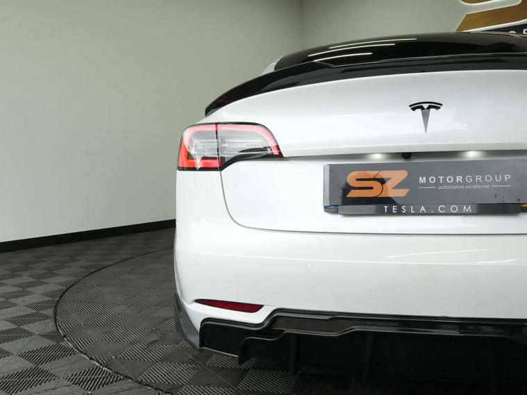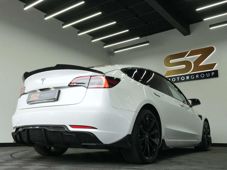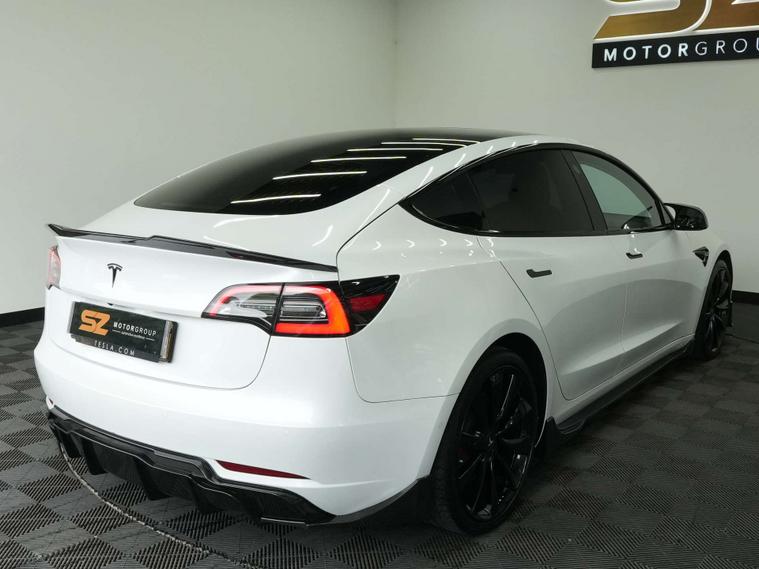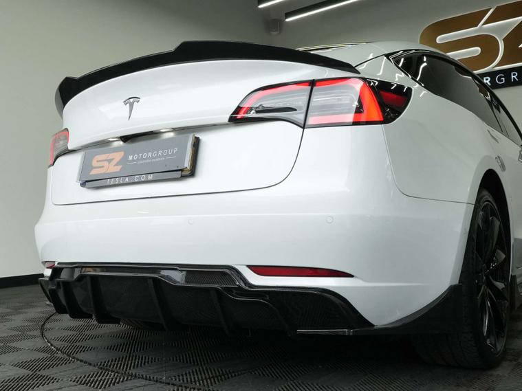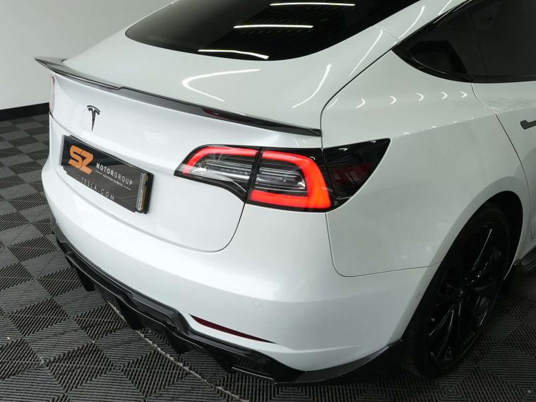SZ MotorGroup Nottingham are pleased to offer this stunning Tesla Model 3 Dual Motor Performance Auto AWD (Performance Upgrade), REGISTRATION GJ20 YRL. Presented in excellent condition throughout, this high-performance example benefits from a full carbon bodykit, 20” black alloy wheels, and a full black exterior pack, giving the vehicle an aggressive yet refined road presence.