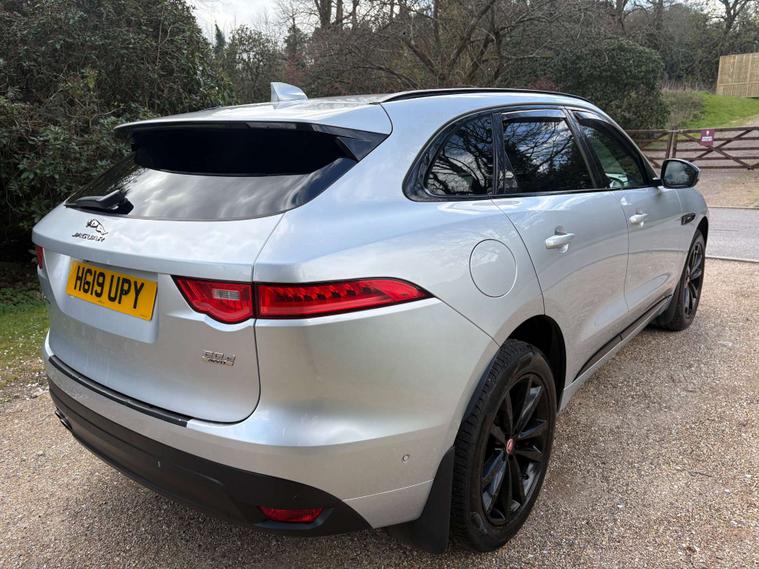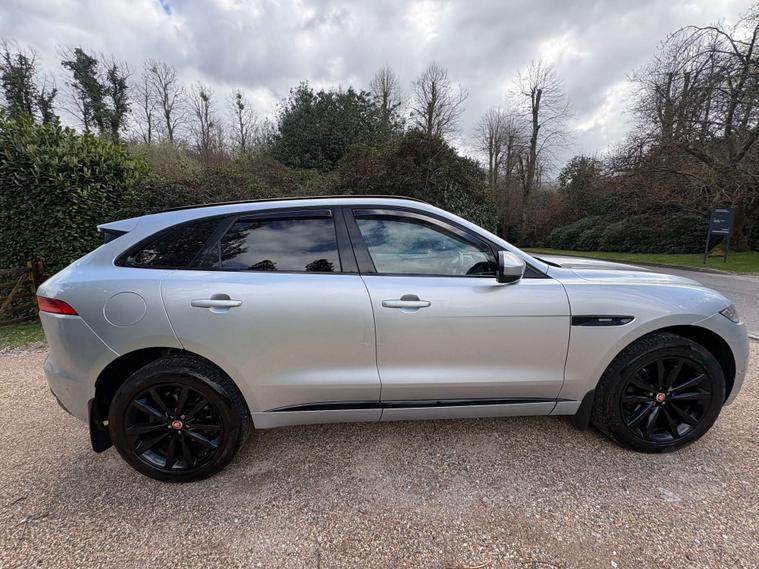 Introducing the stunning Jaguar F-Pace in a sleek Silver finish. This 2.0 F-PACE R-Sport AWD D Auto 4WD 5dr is the epitome of luxury and performance.