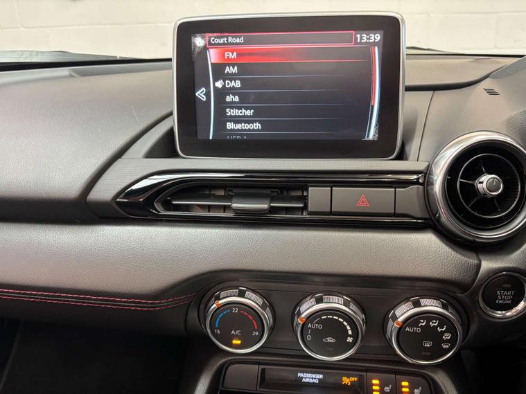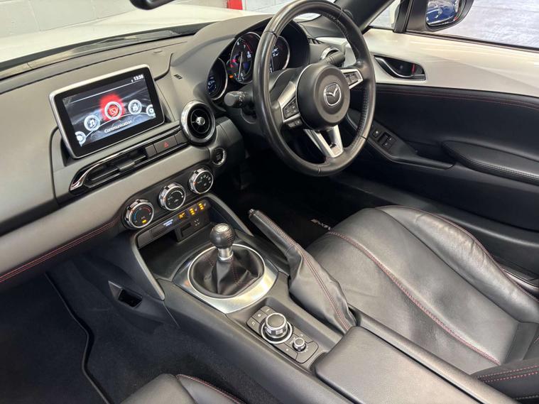 We Specialise selling MX-5's, check out our website for our up to date stock list. This MX-5 will be Supplied with a comprehensive 6 Month Unlimited Mileage Warranty a used car check and new MOT plus 12 months free AA breakdown cover. We offer Competitive Finance subject to status please call for a quotation or log onto our website to use our Finance Calculator. Three owners from new with full Mazda service history. It has Black leather upholstery with red stitching and Heated front seats. Satellite Navigation, Bluetooth Phone and Bose Hi Fi. Rear parking sensors. Cruise control or speed limiter. Multi function computer. Automatic Air conditioning. Multi function steering wheel. Lane Assist. Rain sensing wipers and automatic dipping rear view mirror. Electric wing mirrors. Automatic LED Headlights. Keyless entry and ignition. Refurbished 17" alloy wheels. Immaculate condition throughout. Hpi Clear. Part Exchange Welcome. We are located in Cwmbran by appointment only, please contact Chris to book your appointment:- Call-Text or WhatsApp 01633922672.