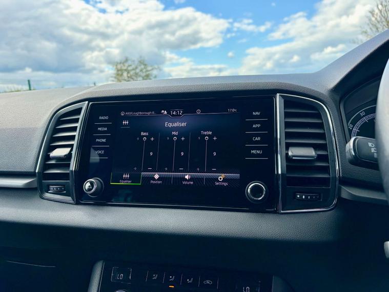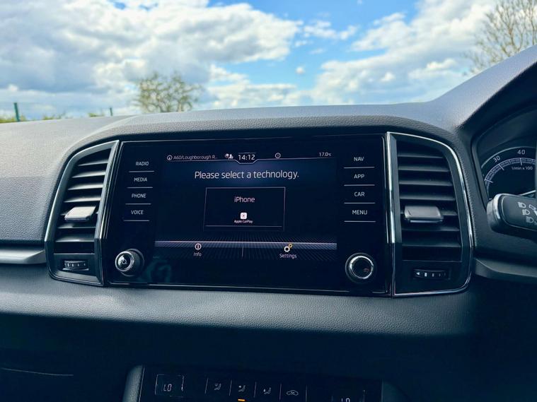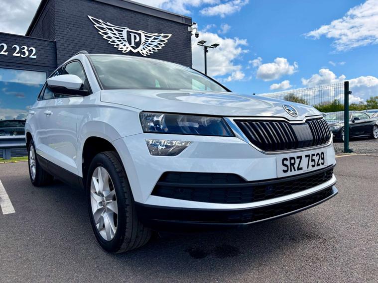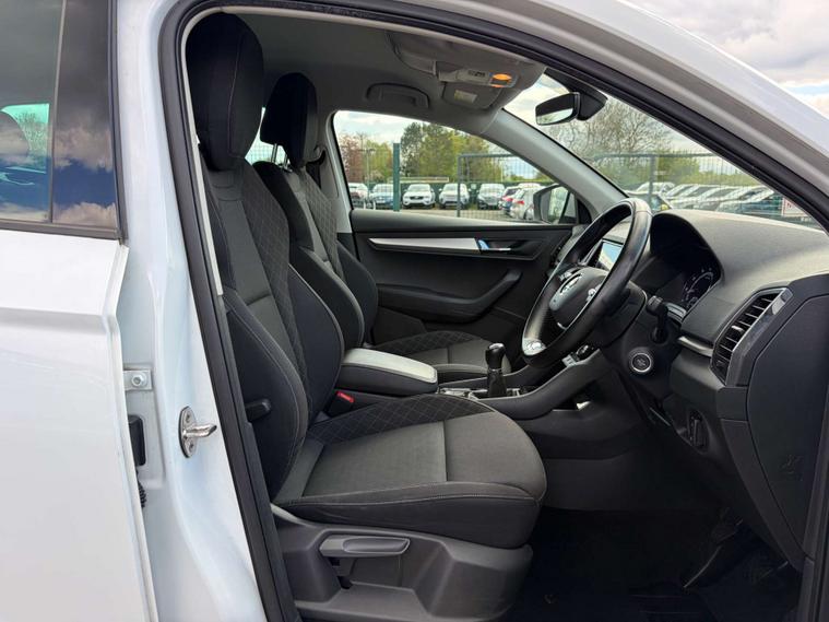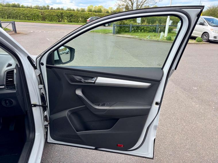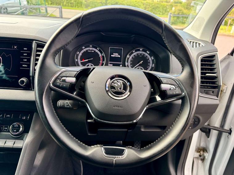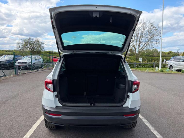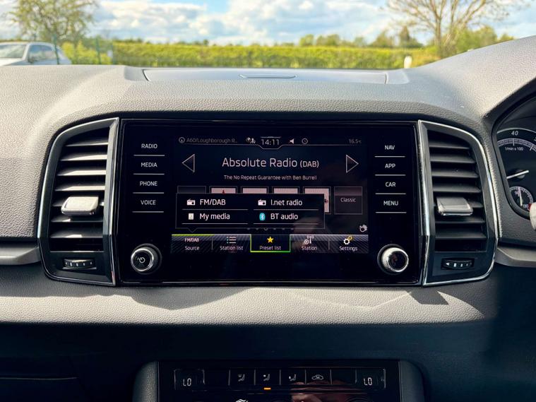 This 2022 Skoda Karoq TSI SE Technology boasts a clear vehicle history, offering you peace of mind. This stylish SUV is equipped with a 1.5 litre Euro 6 petrol engine, providing a smooth and efficient driving experience. Inside, you'll find a host of convenient features designed to enhance your journey, including Adaptive Cruise Control to maintain a set speed, and front and rear parking sensors to assist with manoeuvring. The automatic headlight control and light and rain sensor with auto dimming rear view mirror ensure optimal visibility in varying conditions, while DAB digital radio and Bluetooth connectivity keep you entertained and connected on the go.