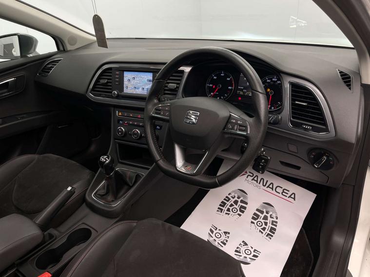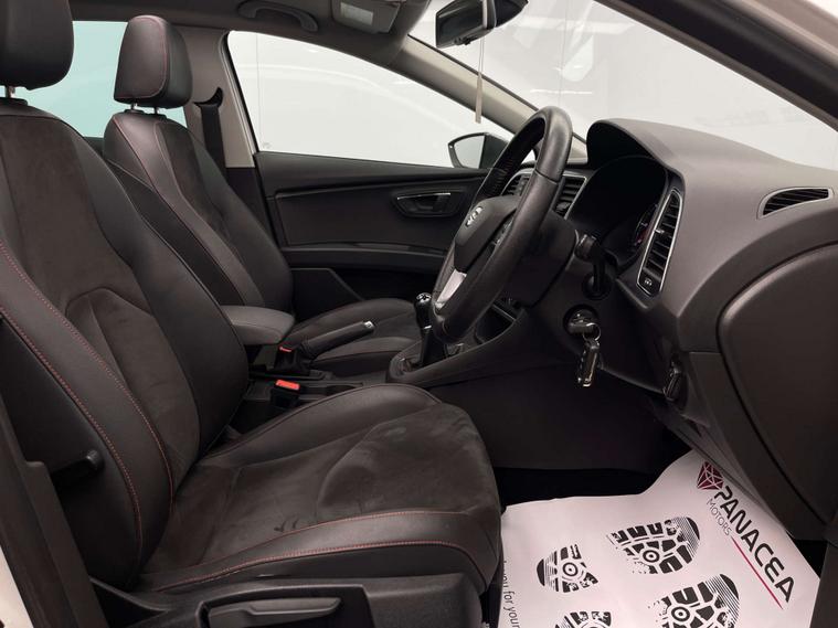 REF : SEAT LEON 2.0 TDI CR FR SPORT TOURER 5DR DIESEL MANUAL 184BHP FINISHED IN WHITE WITH FULL CLOTH INTERIOR. THIS HIGH SPECIFICATION EXAMPLE BOASTS THE 2 PREVIOUS OWNER FROM NEW WITH FULL SERVICE RECORD EQUIPPED WITH OVER £7K OF FACTORY EXTRAS WHICH INCLUDE | CAMBELT WANTER PUMP DONE AT 83K | TILT AND SLIDE PANORAMIC GLASS SUNROOF | SEAT SOUND | ADAPTIVE CRUISE CONTROL | TITANIUM PACK | PRO NAVIGATION | CONVENIENCE PACK | REAR PARKING SENSORS | HEATED AND FOLDING MIRRORS | 2 KEYS | AUTO HOLD | DAB | BE FAST - A RARE FIND IN THIS SPECIFICATION AND NOT TO BE MISSED.... Further to this all vehicles are provided with a comprehensive AA Dealer Care Extended Guarantee and Full AA Roadside, Recovery and Home Start & Onward travel (where not covered under the manufactures own warranty). HPI checks are carried out making sure all cars are clear from any concern, offering you total piece of mind. Every vehicle's mileage is fully guaranteed as genuine. Included with your purchase you will receive a minimum of 3 months Warranty with the option to extended and tailor your package at the time of purchase. Our vehicles are supplied fully valeted to the highest standards and include up to date servicing with a minimum of 9 months MOT. We are regulated by the FCA and can provide a range of flexible finance options, tailoring a package to your needs. We aim to a make the numbers work for you, including 0% deposit deals! We also offer a selection of other products for our customers to protect their investment. These include Williams Ceramic coating, insurance backed policies to protect your investment from financial loss and protection to cosmetic damage. To avoid disappointment please call 01616237517 to arrange a test drive before travelling.