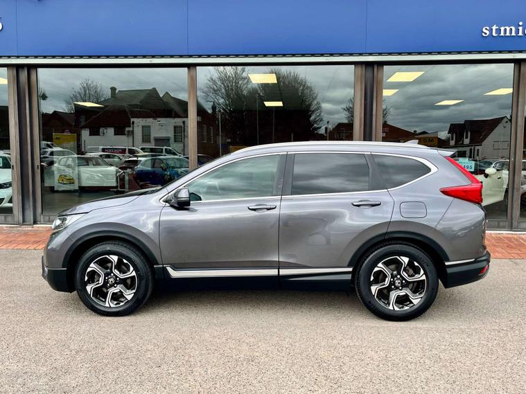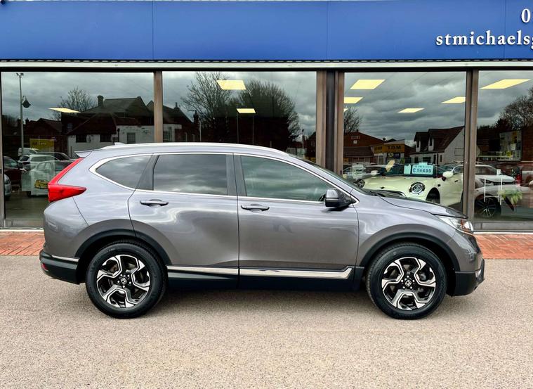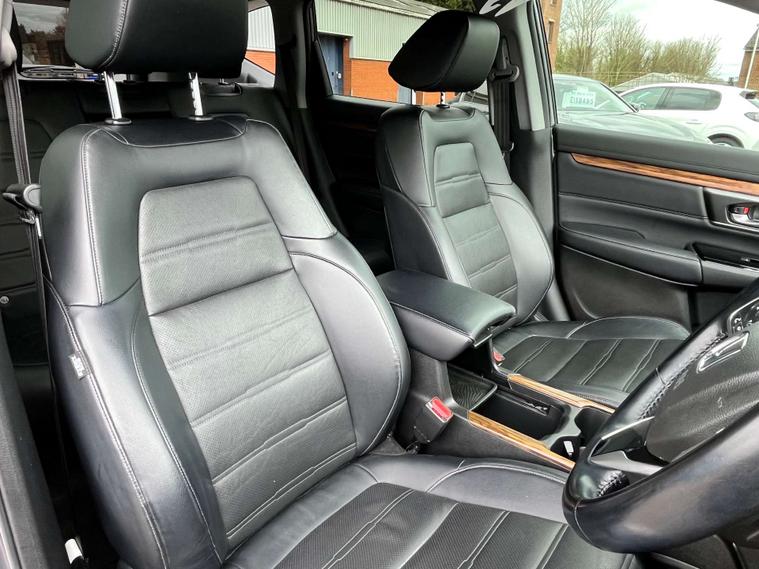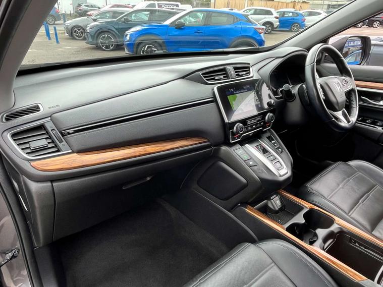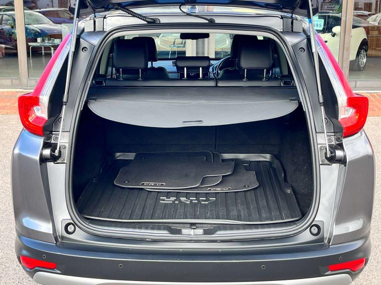 Finished in an elegant Grey, this Honda CR-V exudes a timeless charm that is sure to turn heads wherever you go. The sleek exterior is complemented by the luxurious Lunar Silver accents, while the interior boasts sumptuous Black Leather seats, offering both comfort and style for every journey.