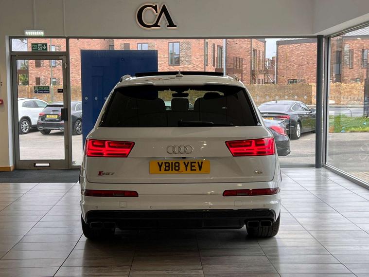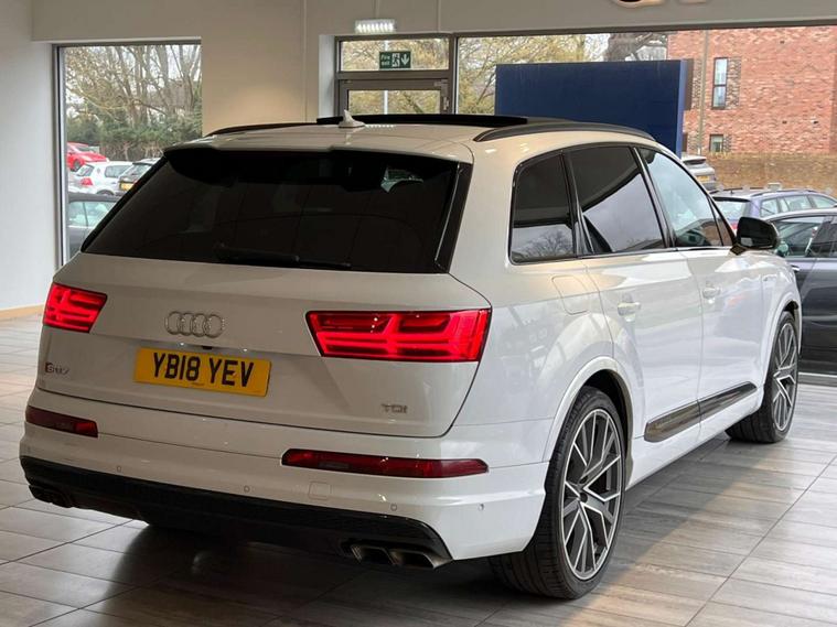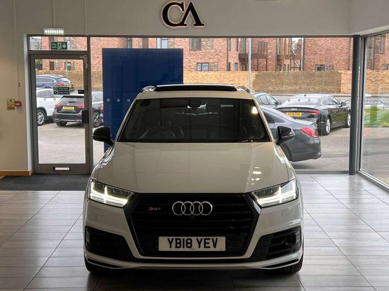This 2018 Audi SQ7 TDI V8 Vorsprung presents a remarkable combination of performance and refinement with a clear vehicle history and a low mileage of just 64, 000 miles. As a Euro 6 compliant model, this four wheel drive SUV boasts a powerful 4.0 litre diesel engine, capable of accelerating from 0 to 62 miles per hour in a swift 4.9 seconds. The spacious interior comfortably seats seven occupants, making it ideal for families or those who require versatile transport. Its impressive towing weight of 3500 kg further enhances its practicality.