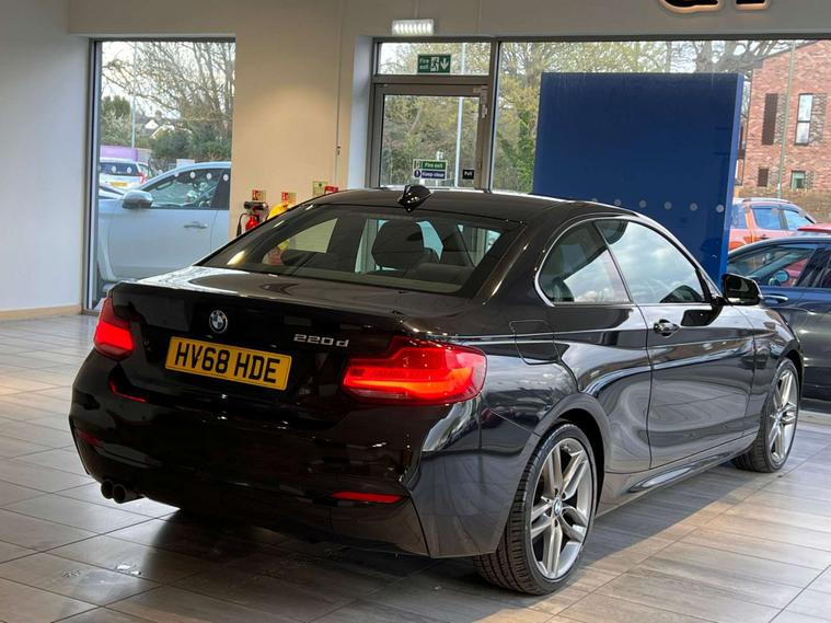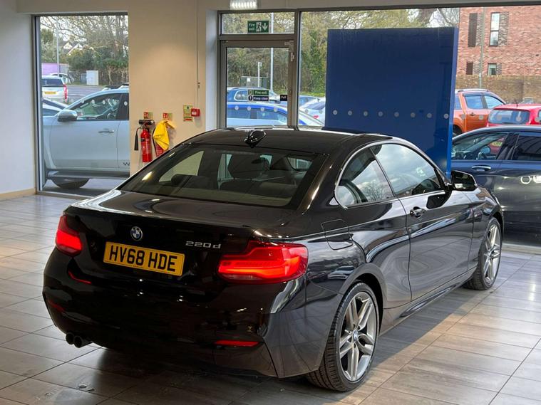 This 2018 BMW 2 Series 220d M Sport offers a compelling blend of performance and efficiency, boasting a Euro 6 compliant 2.0L diesel engine. As an M Sport model, it comes equipped with the sporty M Sport trim, enhancing its dynamic appeal. This particular vehicle includes practical features such as rear Park Distance Control for easier manoeuvring, and a Bluetooth hands free facility with USB audio interface for seamless connectivity and audio streaming. Driving convenience is further elevated by the rain sensor with automatic headlight activation and single zone automatic air conditioning, ensuring a comfortable environment regardless of the weather.